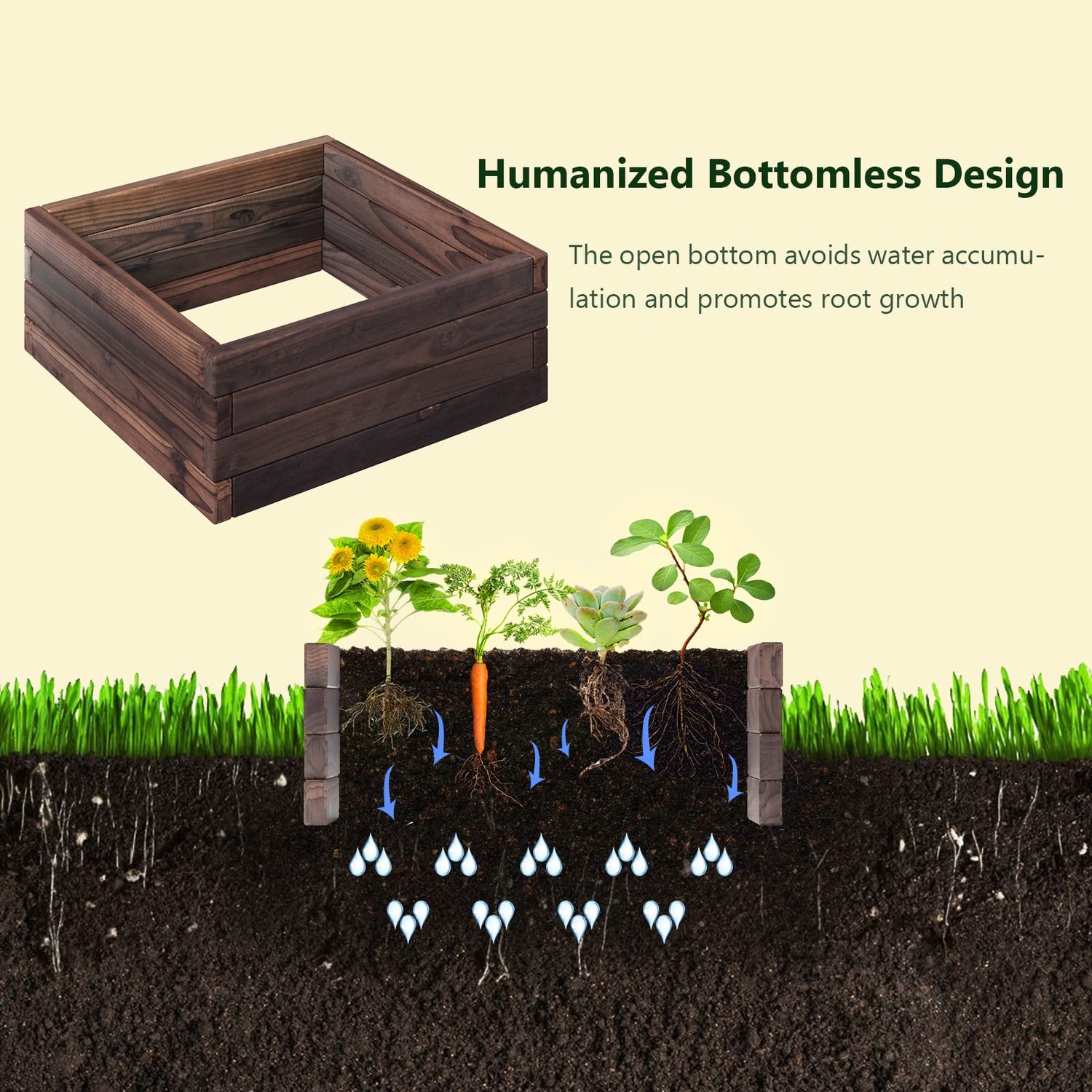 Giantex Raised Garden Bed, Wood Planter Box, Outdoor Planting Bed for Vegetable Flower, Square Planter for Patio and Lawn, 24''Lx24''Wx10''H, Brown