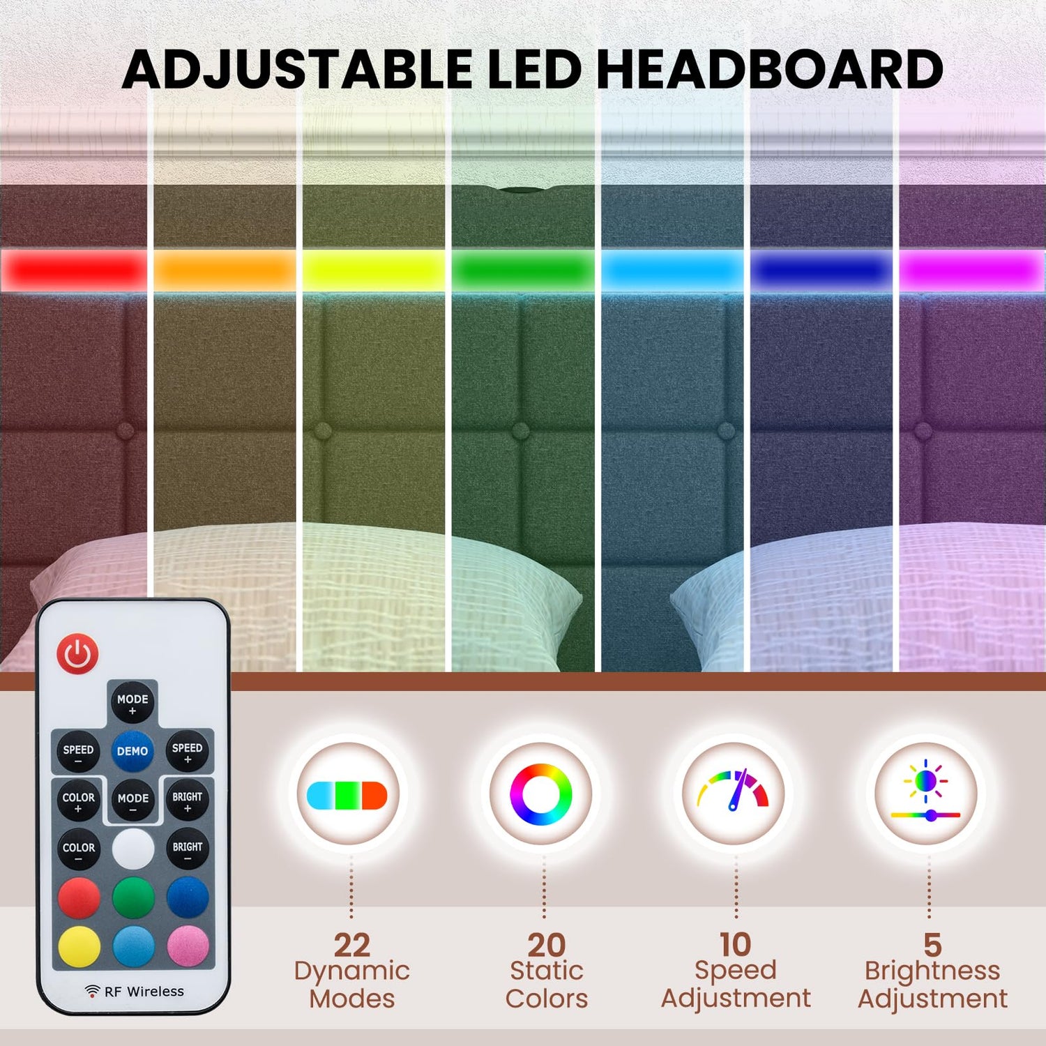 - [Multi-color LED Strip]: Equipped with a charming multi-color LED strip, this platform bed provide 20 colors(dynamic modes/flashing speeds /light levels). Change the bright color to match the mood and make your night more enjoyable. In addition, you can also use the remote control to control the lights within a distance of 49FT.