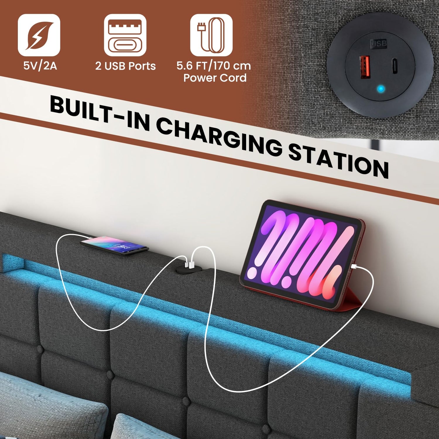 - [Adjustable Headboard with Charging Station]: There is a convenient small charging station at the head of the bed, including 2 usb plug-in ports. You can always charge your phone, tablet or other electronics without leaving the bed. In addition, the height of the headboard can be adjusted in 2 positions (41.5" – 43.5") to suit the needs of people of different heights.