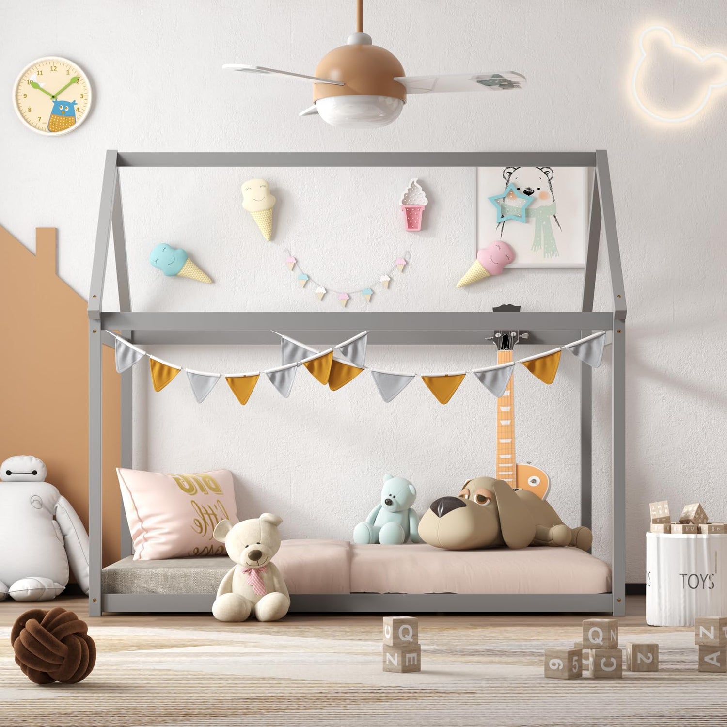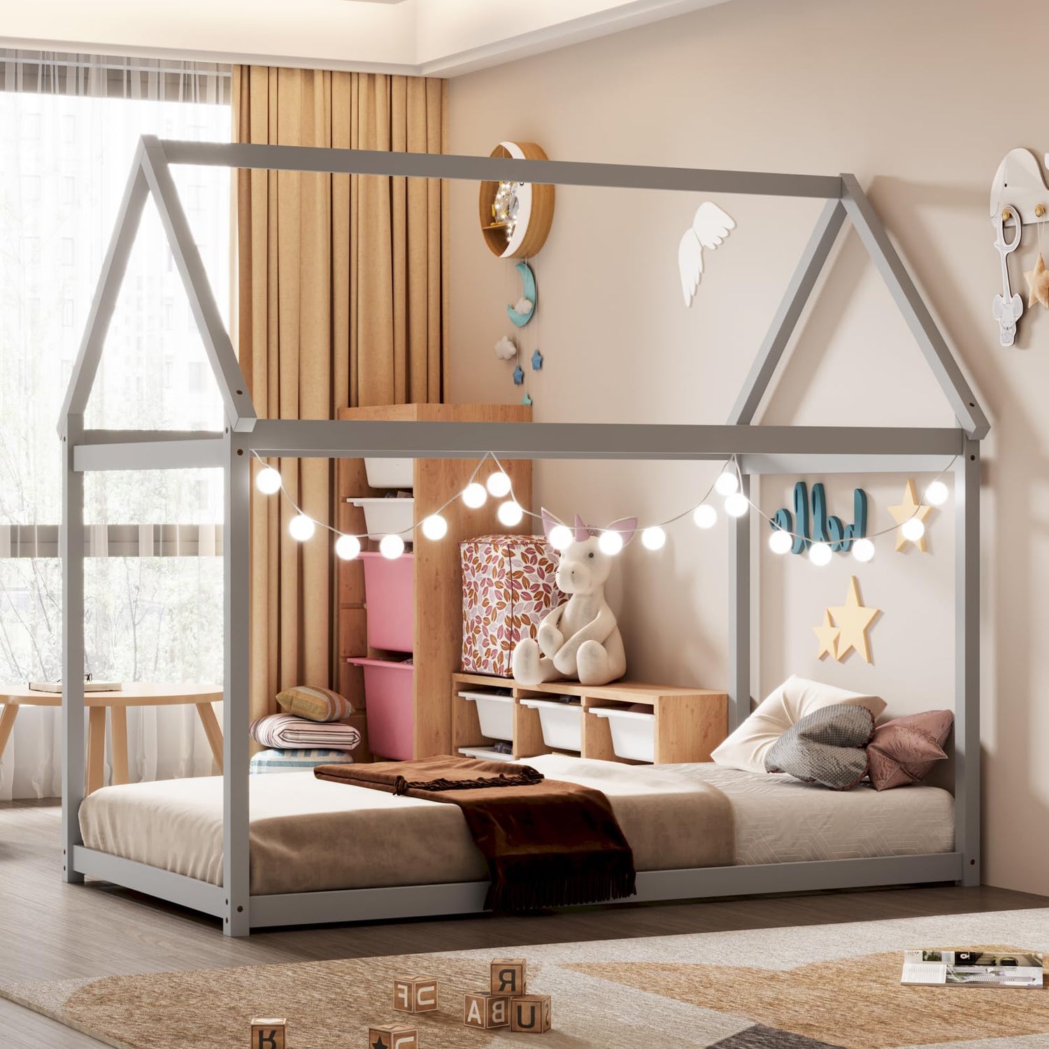 Transform your child’s bedroom into an enchanting wonderland with the Giantex Twin House Bed Frame. This Montessori-inspired bed features a whimsical house shape design that sparks imagination and creativity in your little one. It’s not just a bed; it’s a canvas for their dreams and adventures.