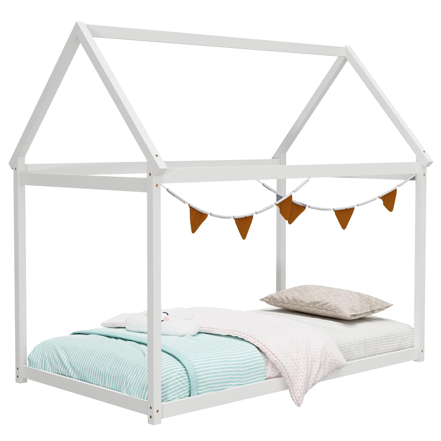 Bring joy and wonder to your child's sleeping space with the Giantex White Twin House Bed Frame with Canopy—a perfect blend of fun, functionality, and style.
