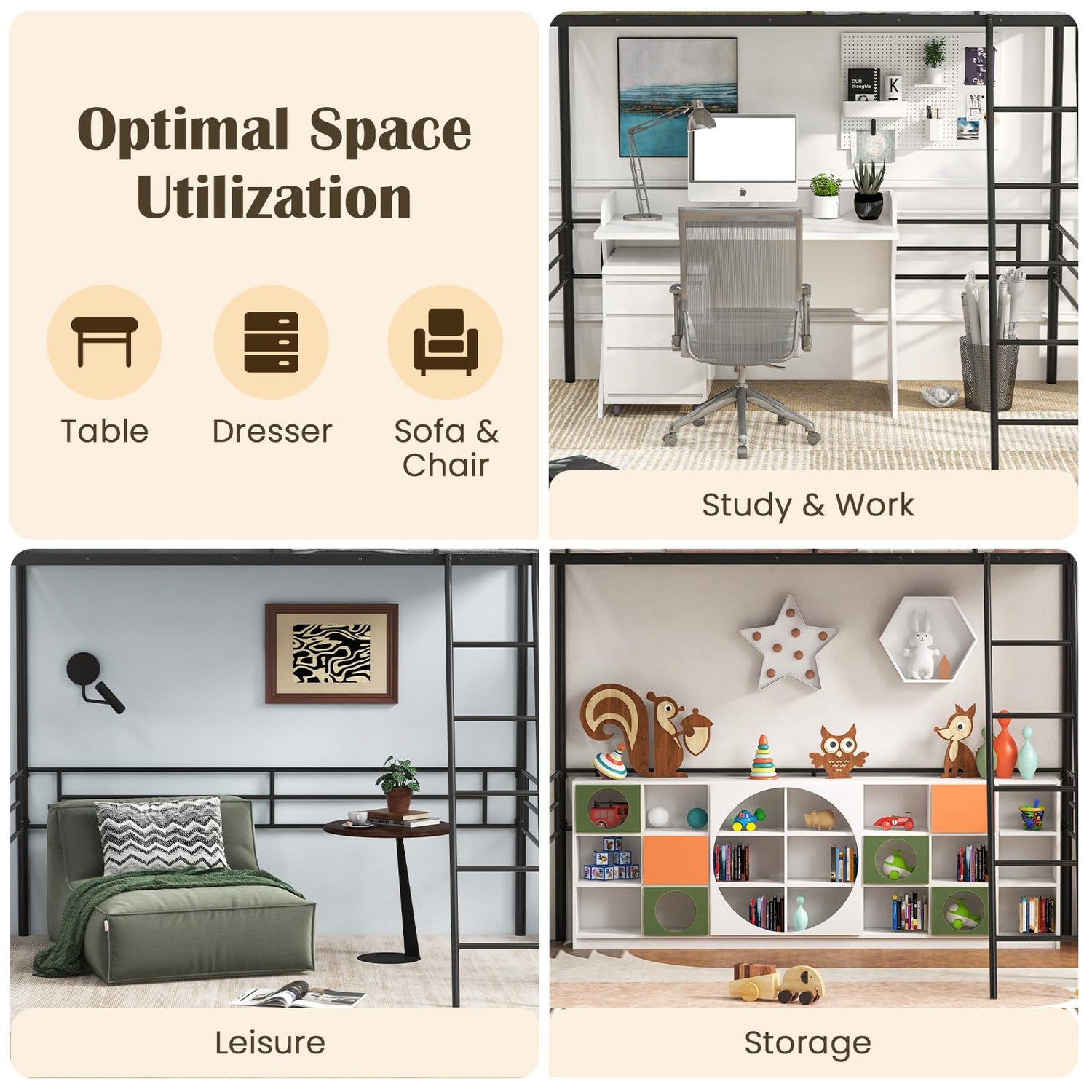 - [Space-Saving Design]: This twin size loft bed is engineered to maximize space in any room. Its vertical arrangement allows for efficient use of floor space, making it ideal for small rooms or areas where space is at a premium.