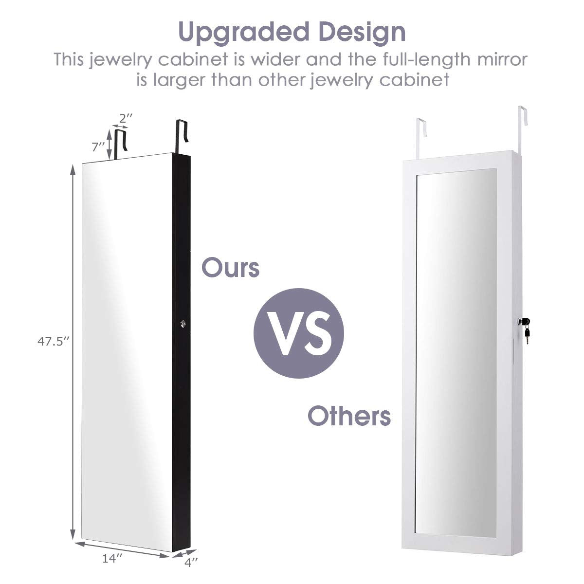 - 【Full-Length Frameless Mirror】 The jewelry organizer is a combination of a full-length mirror and a jewelry cabinet. It can be used as a mirror for you to dress. It can also be used as a practical jewelry cabinet to store your daily jewelry. Our mirror is 47.5"H x 14"W, which is wider than others.