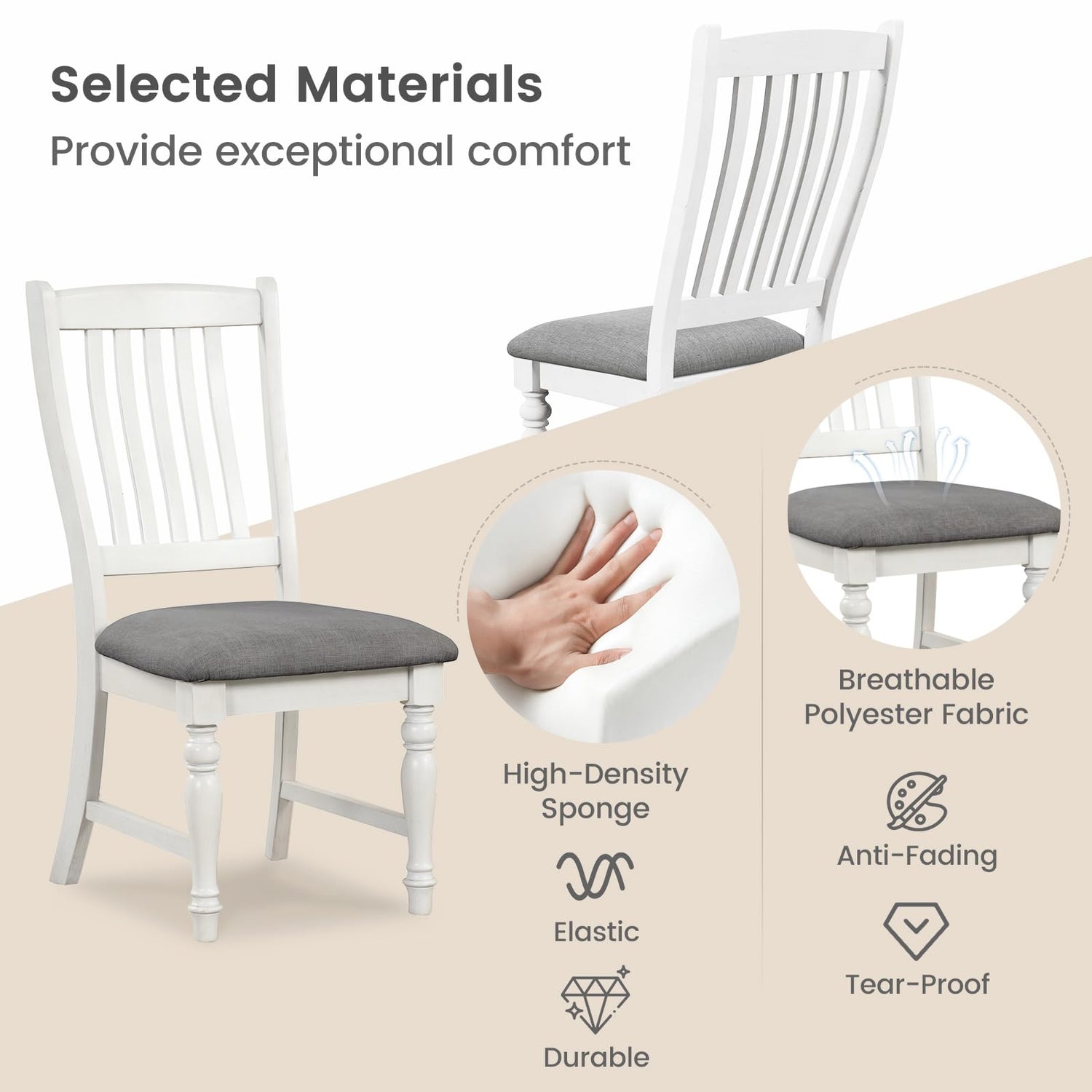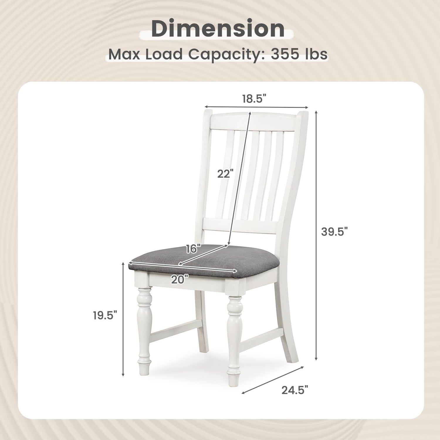 Giantex Wood Dining Chairs Set of 2, Farmhouse Kitchen Chairs with Solid Wood Frame, Max Load 355 Lbs, Armless Upholstered Dining Side Chairs with Cushion Seat, Slat Back Dining Room Chair, White