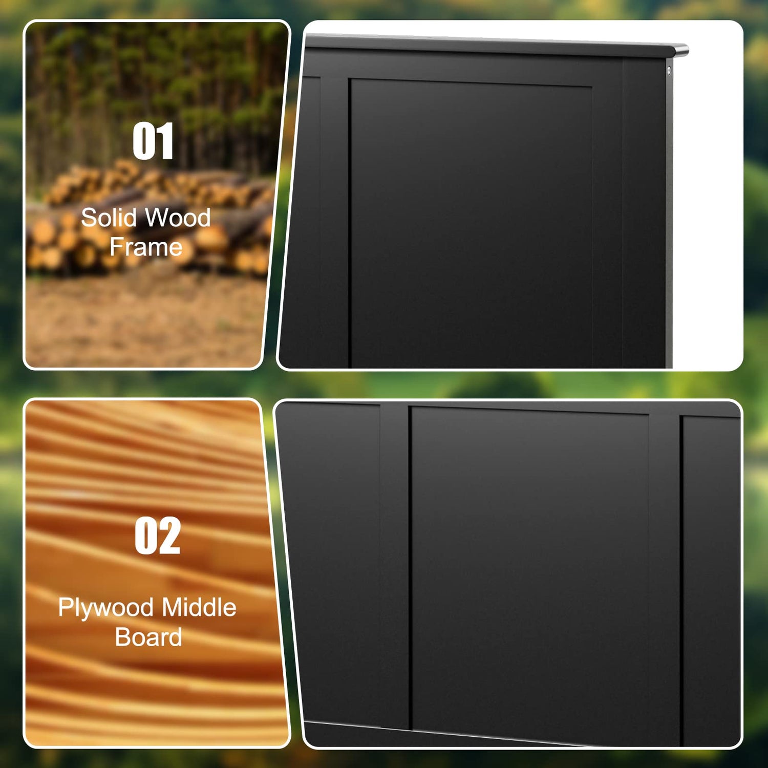 Giantex Adjustable Black Wooden Headboard for Full Beds with Solid Pine Construction