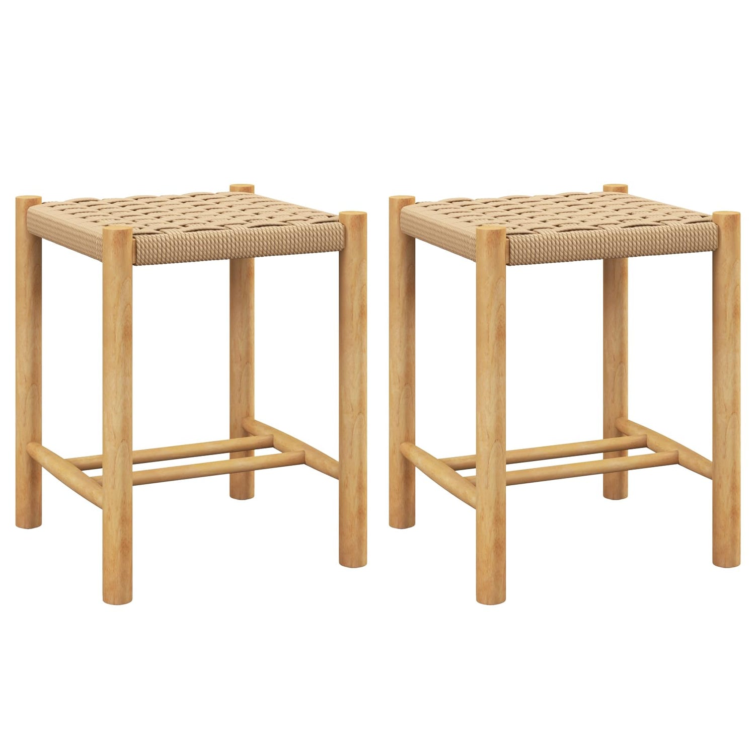 Giantex Wood Stools Set of 2, 18" Tall Boho Backless Stool Chairs with Rubber Wood Legs, Max Load 330 Lbs, Armless Wicker Stools for Kitchen Dining Room Indoor Outdoor