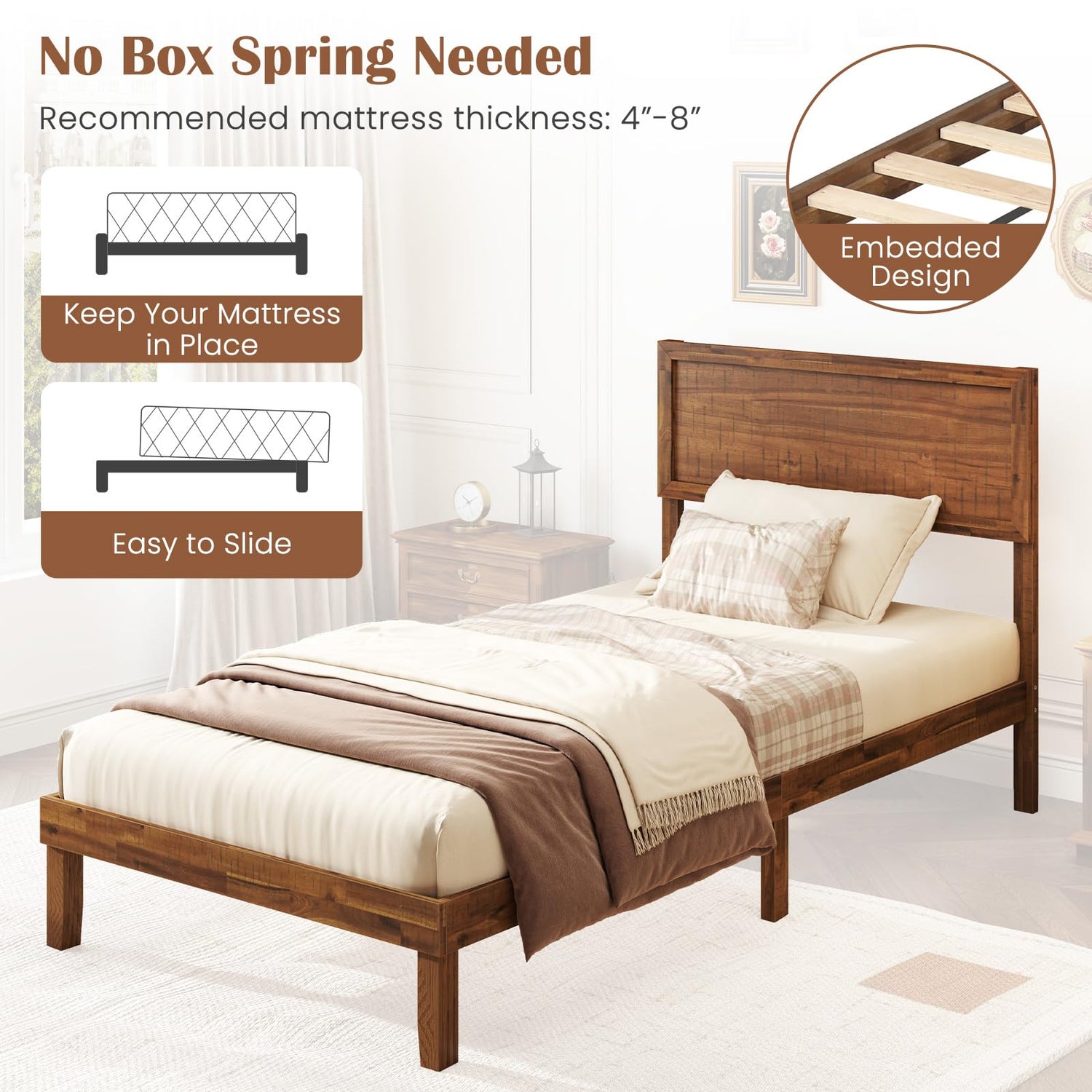- Embedded Platform Design: The twin bed frames with headboard ensures a comfortable night's sleep without the need for a box spring. Additionally, the wood platform bed aligns seamlessly with mattresses up to 8" thick.
