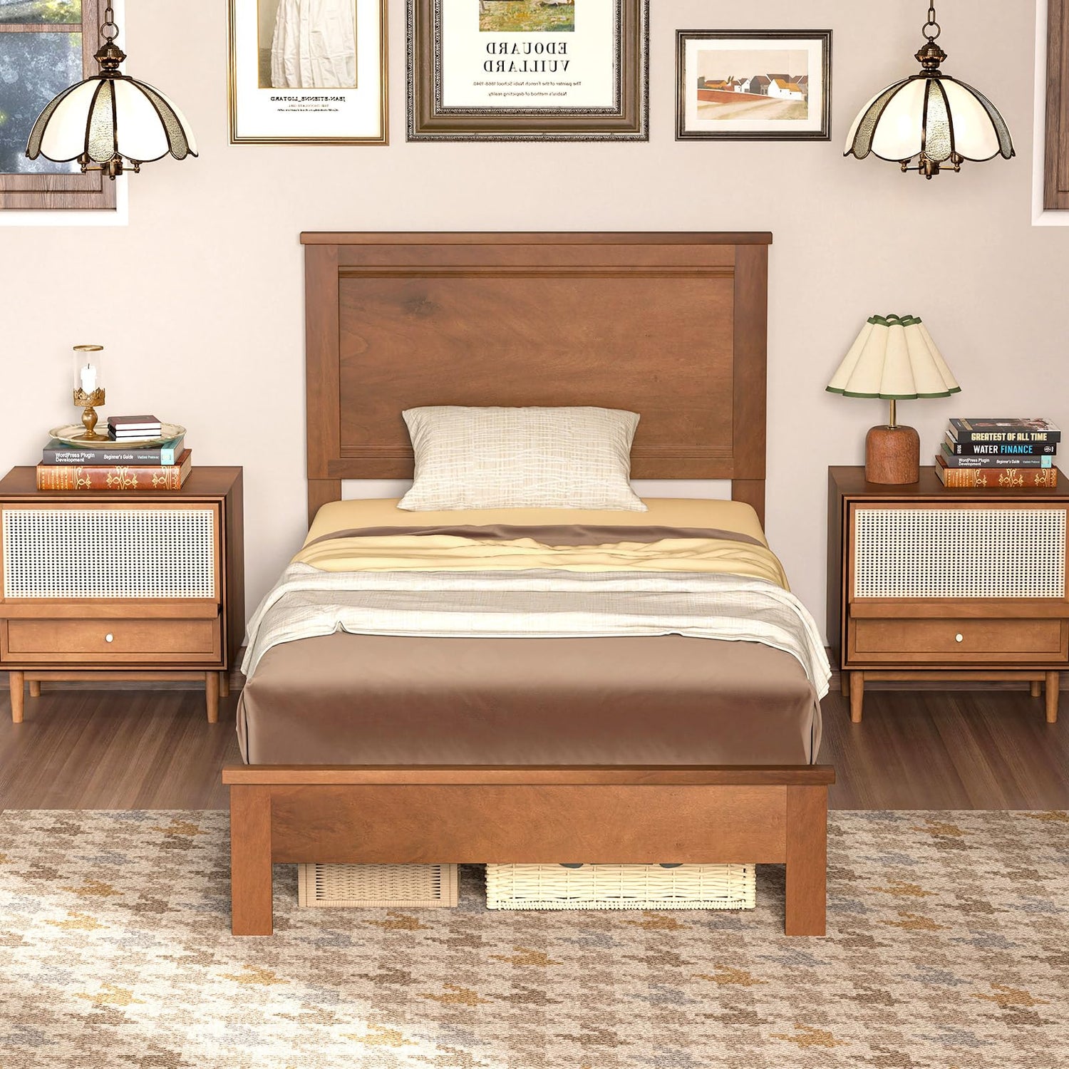 Giantex Wood Twin Bed Frames with Headboard, Mid Century Platform Bed Frame with Solid Wood Legs & Wooden Slat Support, Twin Bed Frames for Kids Adults, Walnut Bed