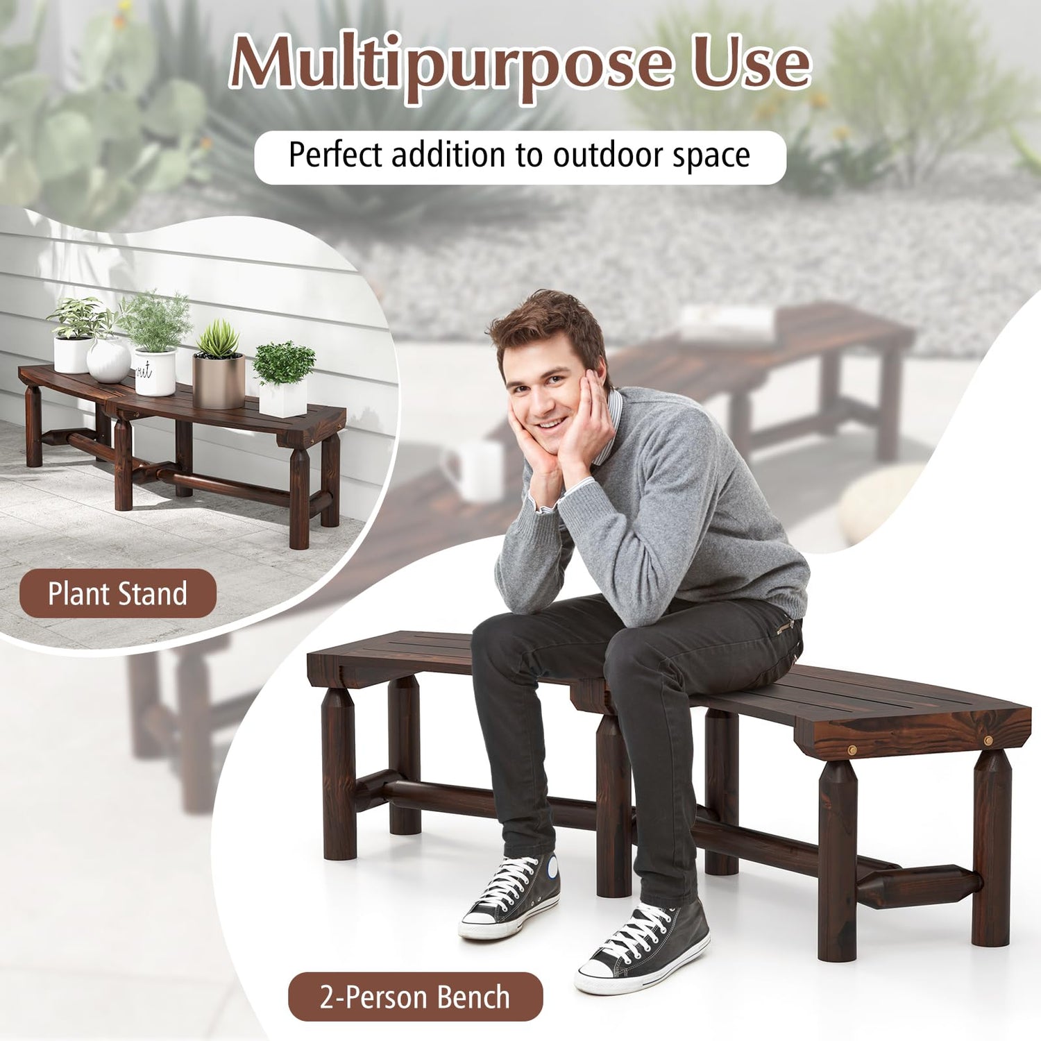 Giantex Rustic Brown Curved Outdoor Bench for 2 - Stylish Fire Pit Chair with Fir Wood Surface and Pine Legs