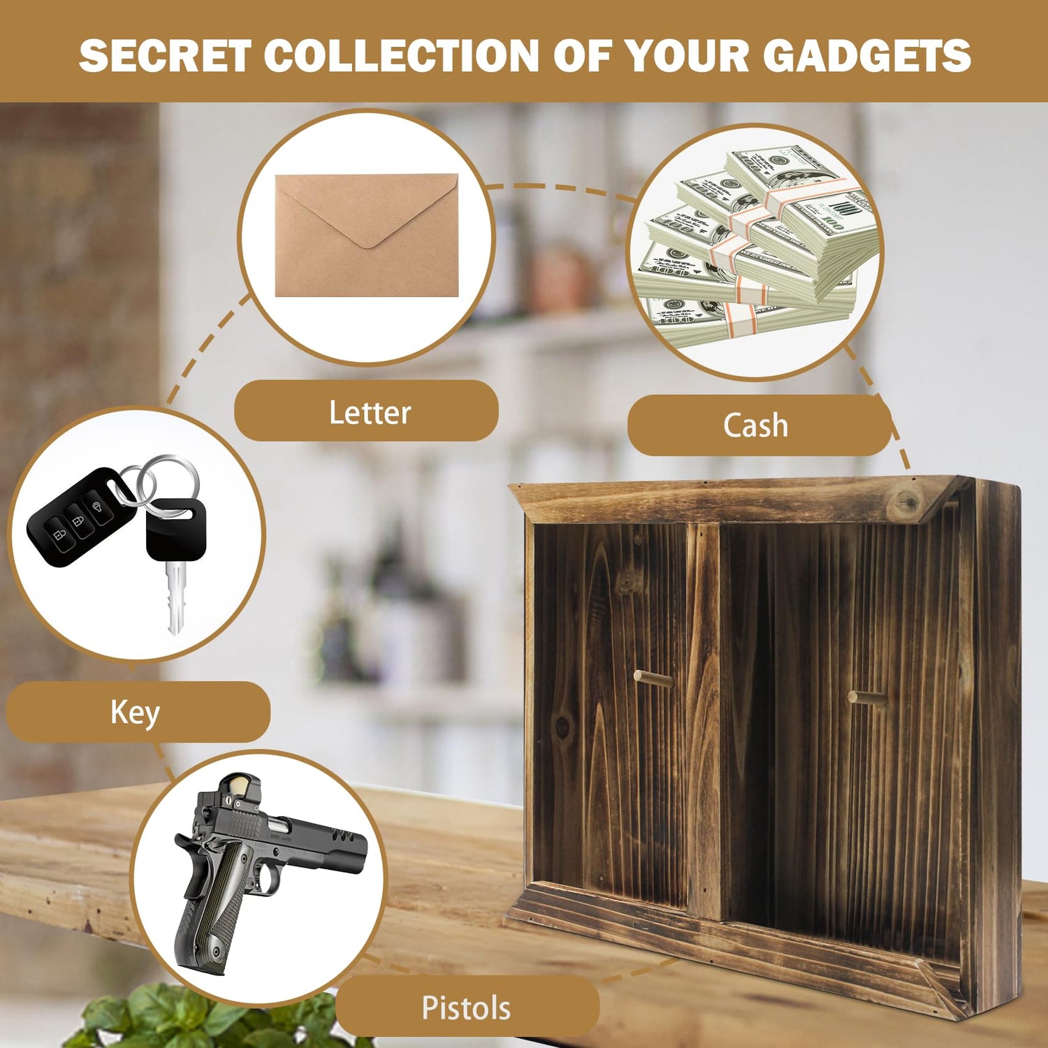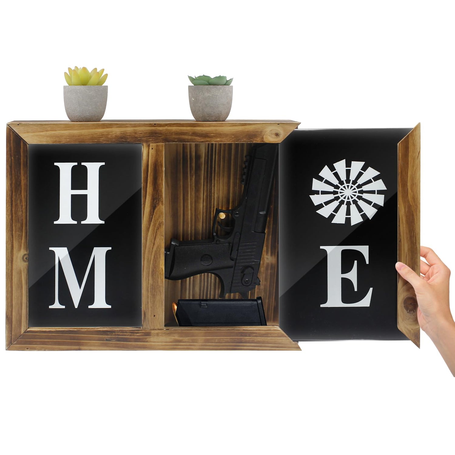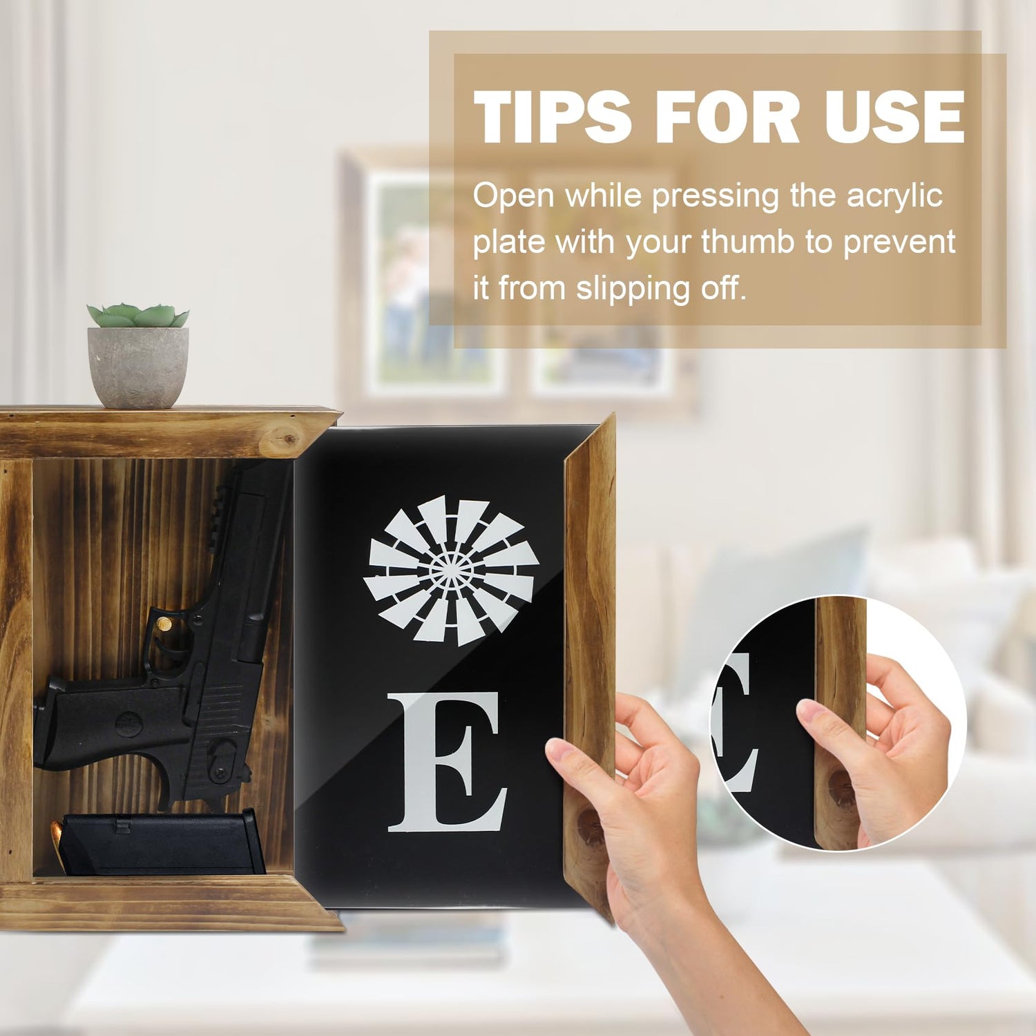 - 【Dual-Slot Hidden Pistol Gun Safe Storage】Made of solid wood, chalkboards, acrylic, and engraved with the word 'Home'. Open the dividers of the hand gun safes cabinet to the left or right to secretly store pistols, letters, cash, etc.