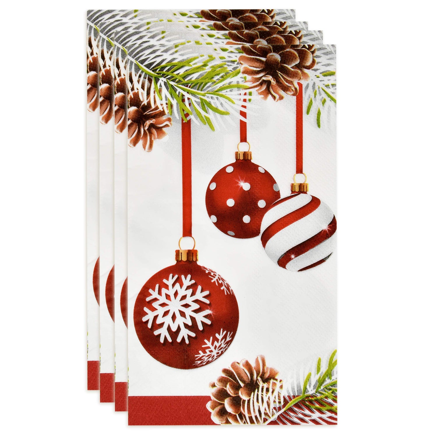 - Christmas Guest Napkins: Gift Boutique Christmas guest napkins includes 100 dinner napkins featuring elegant hanging ornaments with pine leaves and cones!