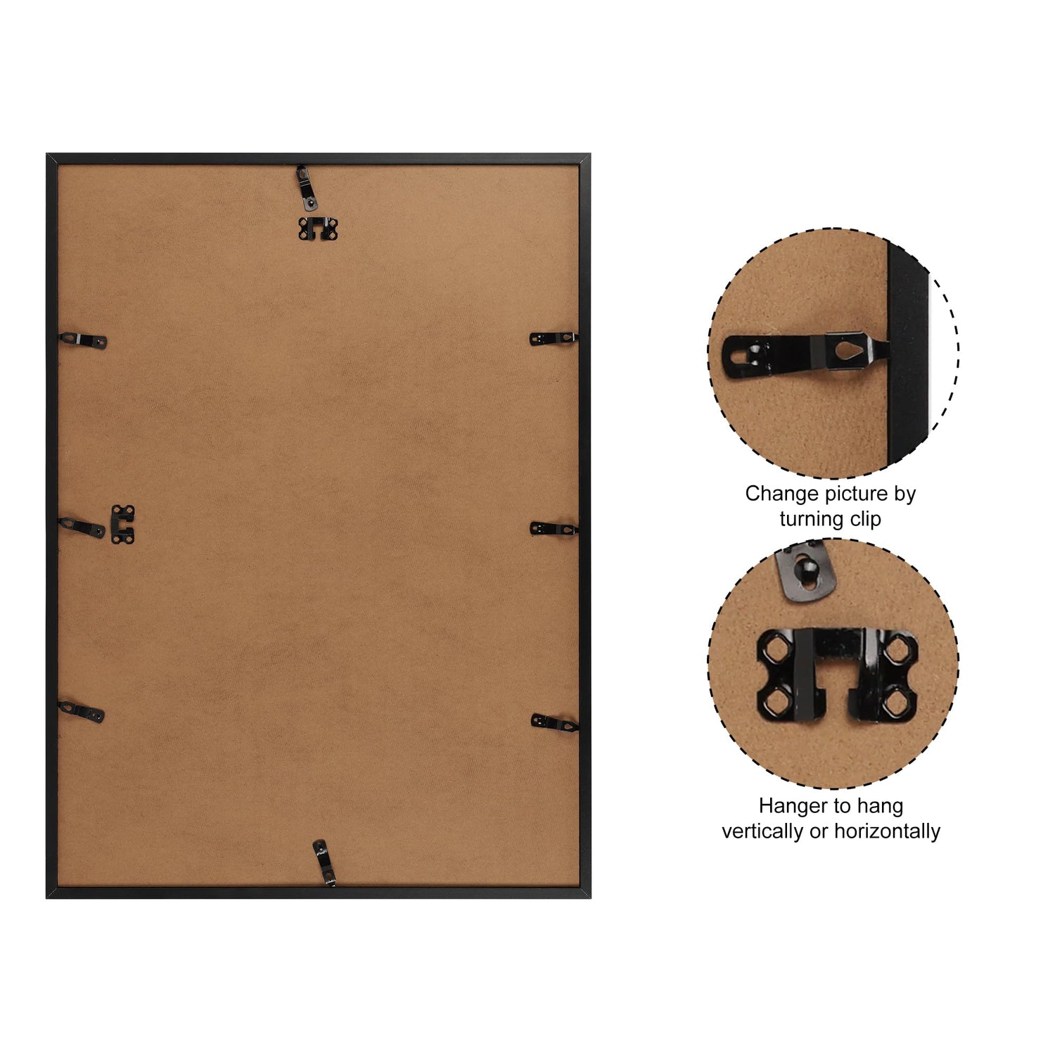 - Versatile Display: This 50x70cm poster frame can be displayed either horizontally or vertically, giving you the flexibility to use it with any photograph. The frame features easy-open clips on the back, allowing you to load your poster quickly and securely.