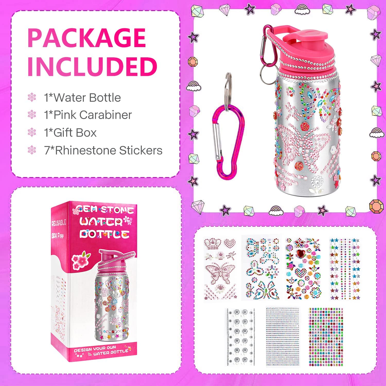 - SUPER FUN ARTS AND CRAFTS FOR KIDS! Kids love decorating their own bottle with this pink kids water bottle craft kit! It comes with 7 sheets of our sparkly rhinestone glitter gemstone stickers, giving kids hundreds of our sparkly glitter gem stickers to bling out their bottle! Plus we include a carabiner to hang the bottle.