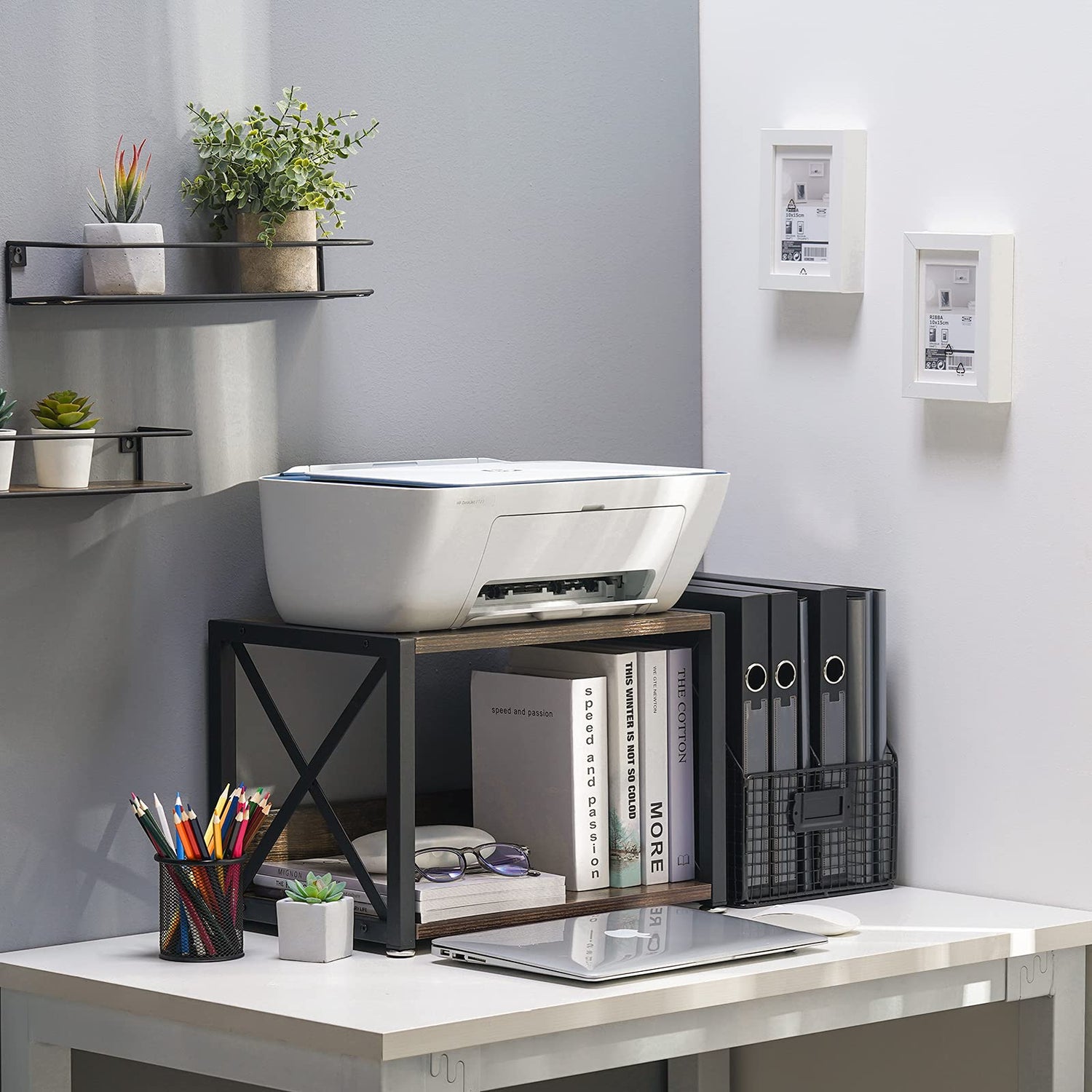 - 【Double-Tier Wood Printer Stand】Enhances storage capacity with tiered design, top shelf is designed for printer, fax machine; Bottom shelf for files and papers to be printed. Keep everything easily reached and make your workplace organized and tidy.
