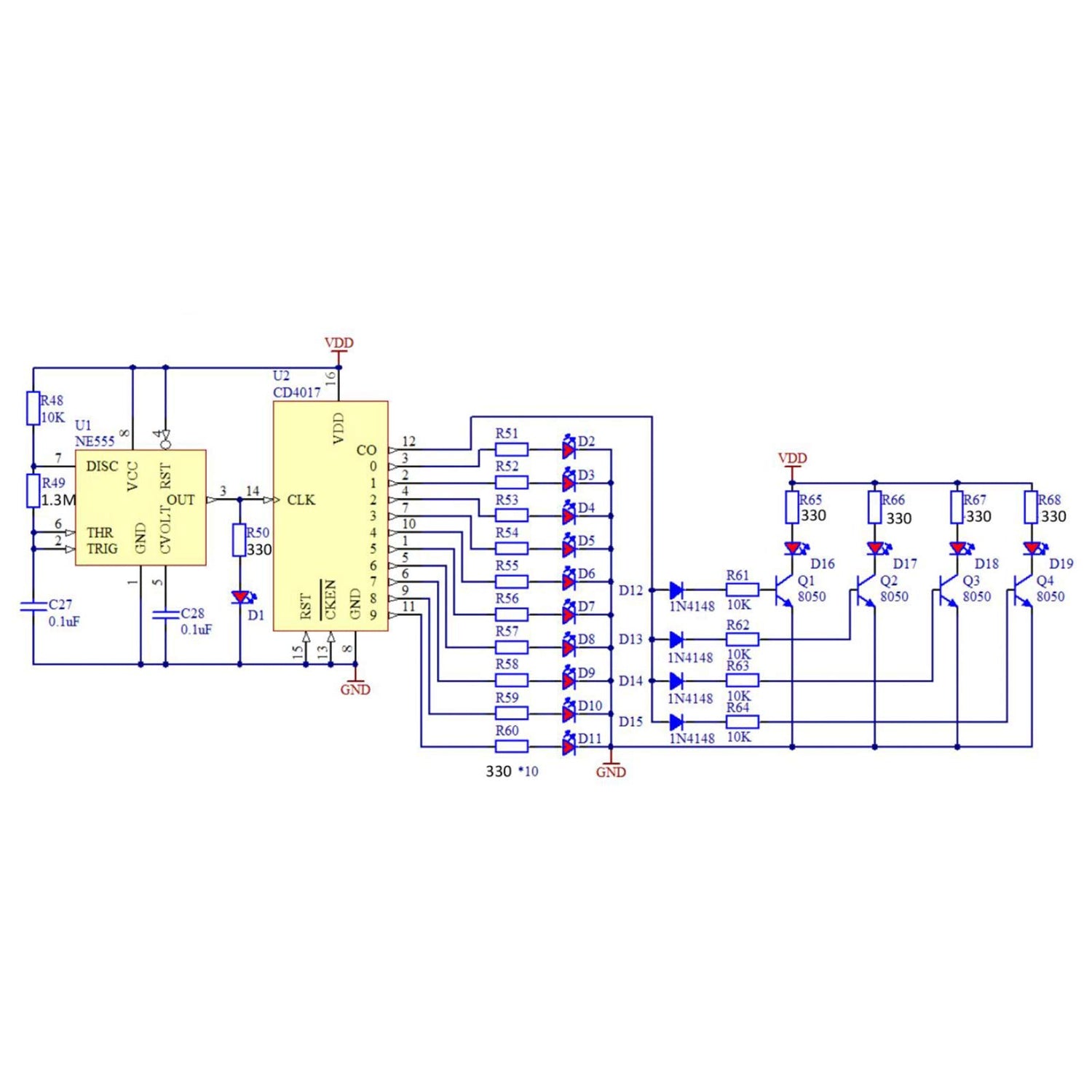 - After welding, just connect electricity (3-12V) to see the effect. You can quickly judge the welding effect. The welding product is a beautiful water lamp circuit.