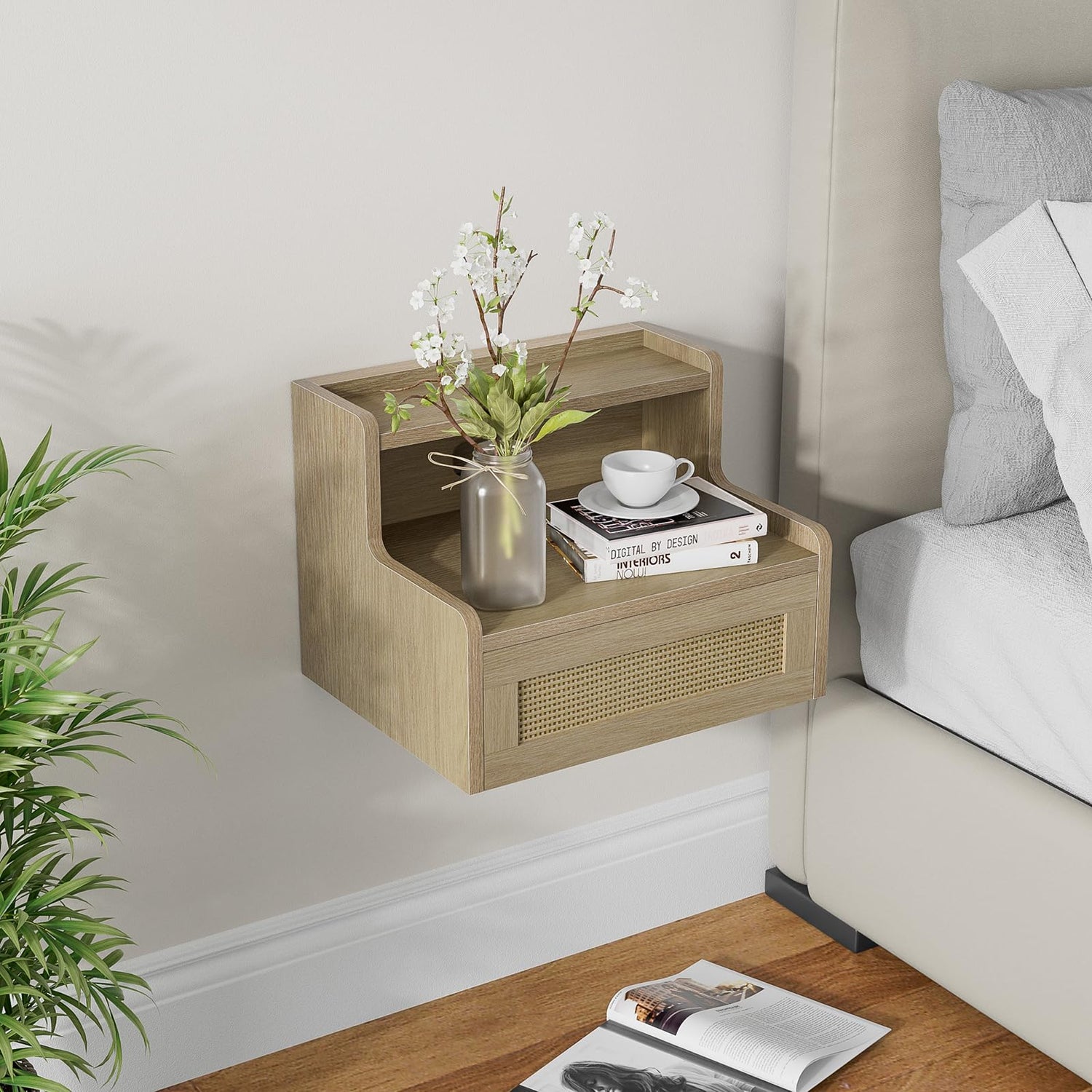 - Multi purpose: The wall mounted Bedside Shelf can be a bedside table, used as a side table, placed on the table as a storage box, or placed at the entrance to store your daily essential keys and cards. This floating shelf with drawers is the perfect bedside table to meet all your bedside needs.