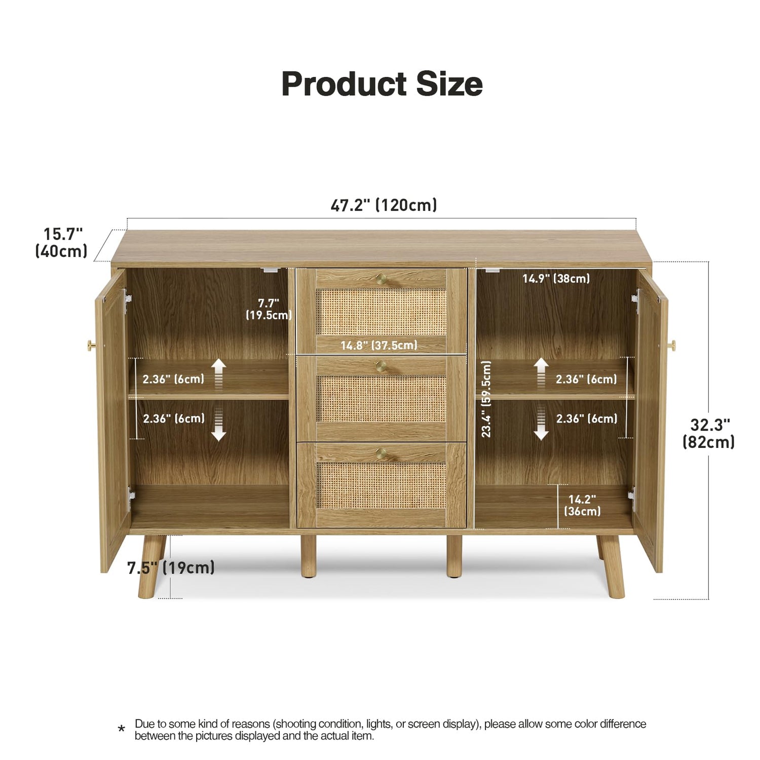 - 👍Stable Structures: Rattan accent storage cabinet is made of particle board, natural rattan and solid wood legs with exquisite workmanship. This can ensure the stability and durability of this buffet cabinet and support a long service time.
