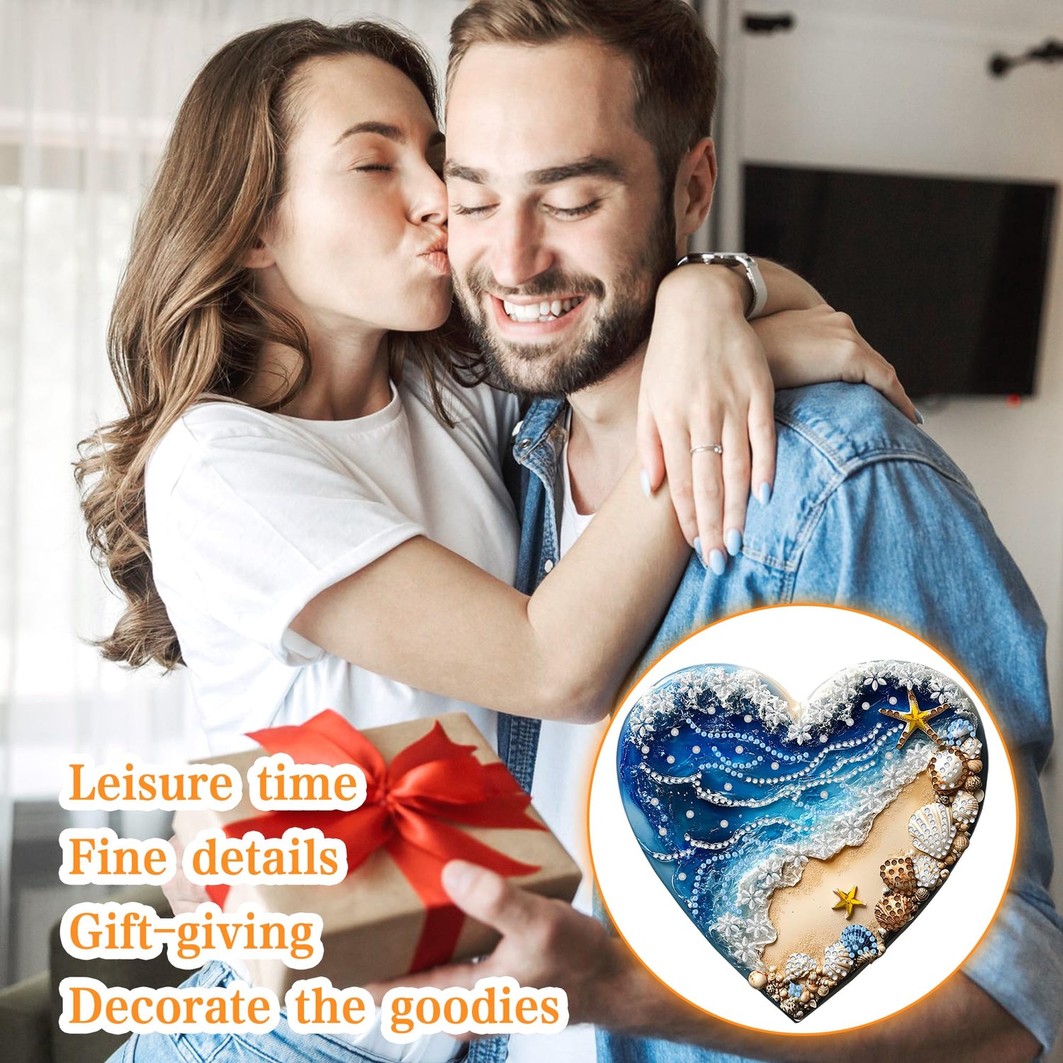 - This sun catcher for front door sign depicts a heart-shaped canvas where the upper half represents the deep blue sea with waves crashing onto the sandy shore below. The scene is adorned with various shells and starfish, adding a touch of nature's beauty. This artwork captures the essence of tranquility and the timeless charm of the seaside, perfect for those who appreciate the allure of the ocean.