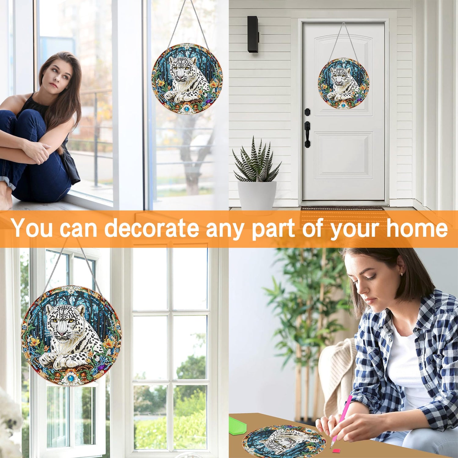 Ginfonr Diamond Painting Kits Hanging Pendant, Tiger Sun Catcher for Front Door Sign, Animal Rhinestone Diamond Decor for Porch, Double Sided Home Hanging Kits for Garden Wall Window (8 x 8inch)