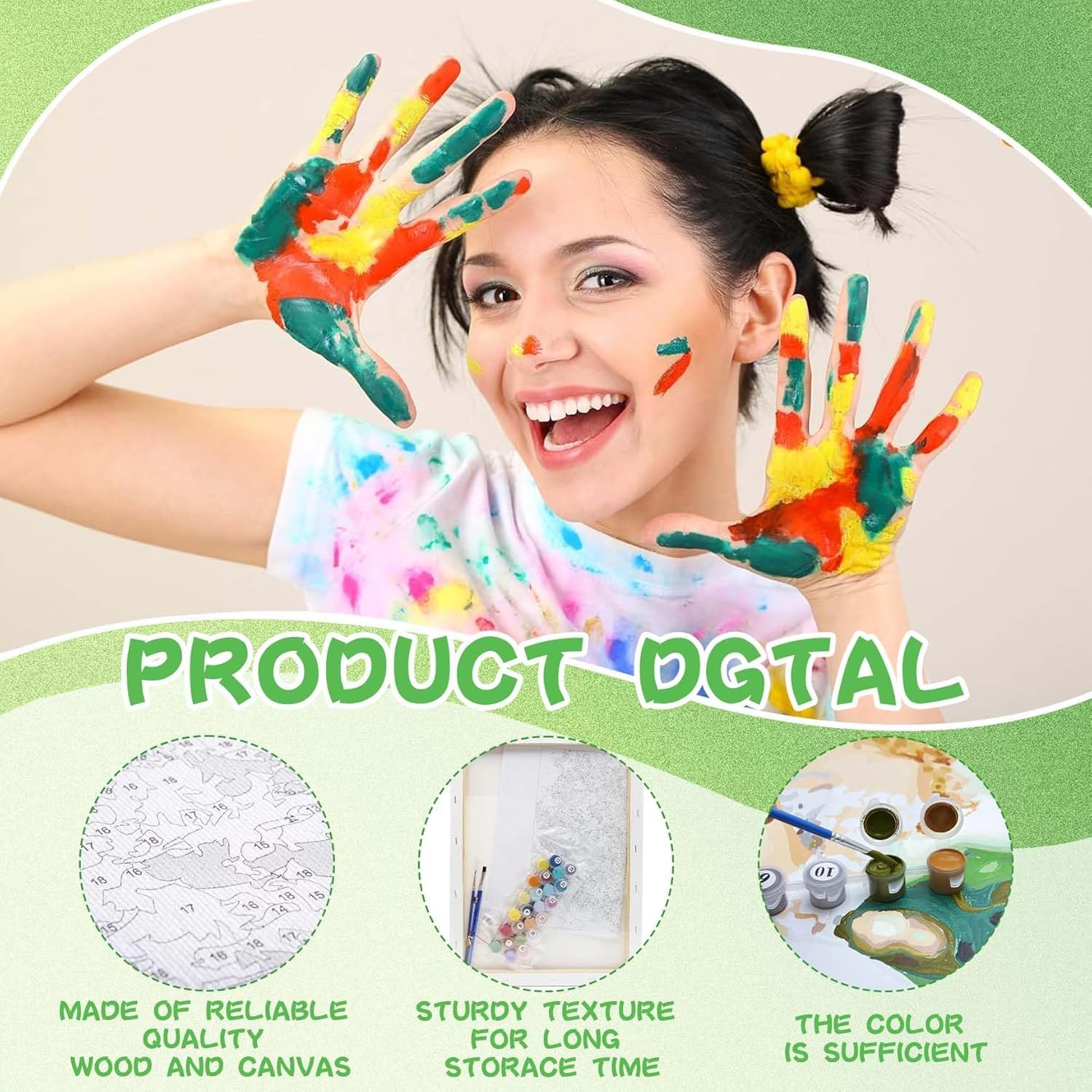 - Colored HD canvas: Made of good quality canvas, the digital markings on the canvas are clearly visible, and the paint adheres strongly to the canvas. The colorful canvas not only reduces eye fatigue, but also makes the adult paint by number kits process more comfortable and enjoyable, enhancing the overall experience 3