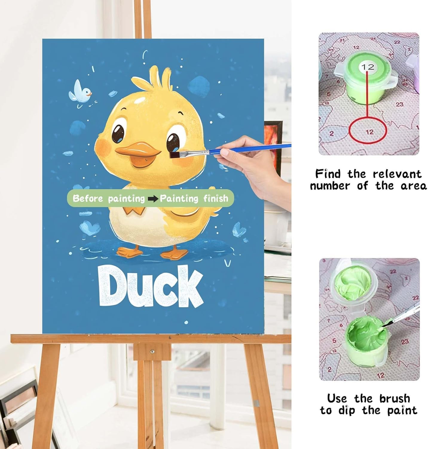 - Compare with Traditional Paint by Number: our framed digital oil painting is more convenient, all of our paints are only about 10 kinds, compare with traditional digital oil painting's messy, we are more simple; our digital oil painting is 20*32 size, you can make it wherever you want to make it, and it can be hung up immediately after making it, no need for you to buy other auxiliary tools 3