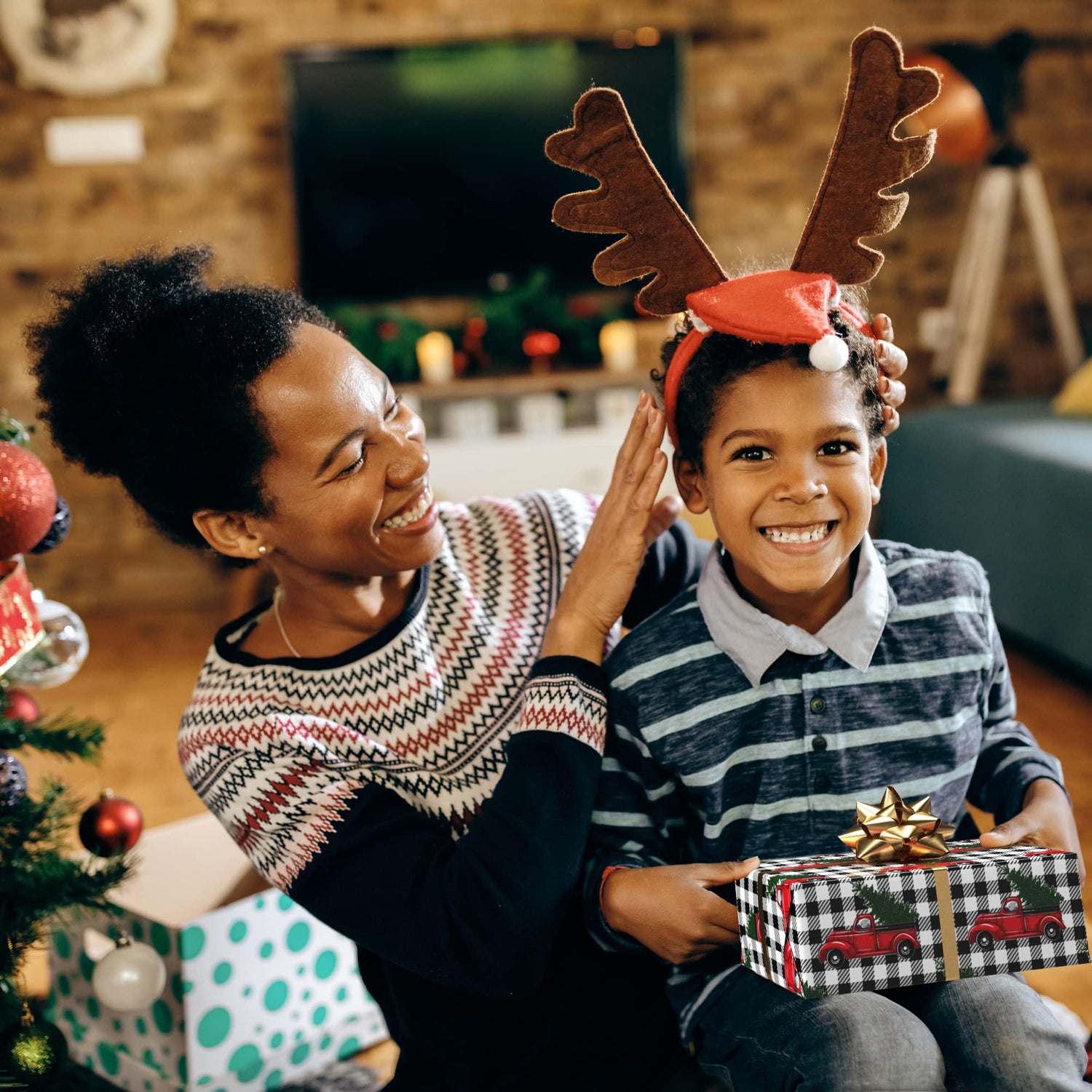 - Novelty Designs: This Christmas gift wrapping paper contain snowflakes with red/black stripes, trucks with white/black stripes, green Christmas trees, and gray elk. Each pattern is perfect for wrapping a gift, adding more holiday spirit to your gifts.
