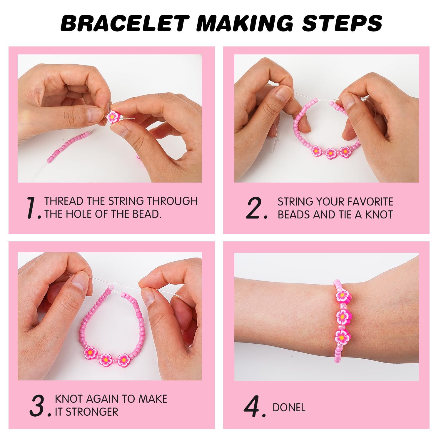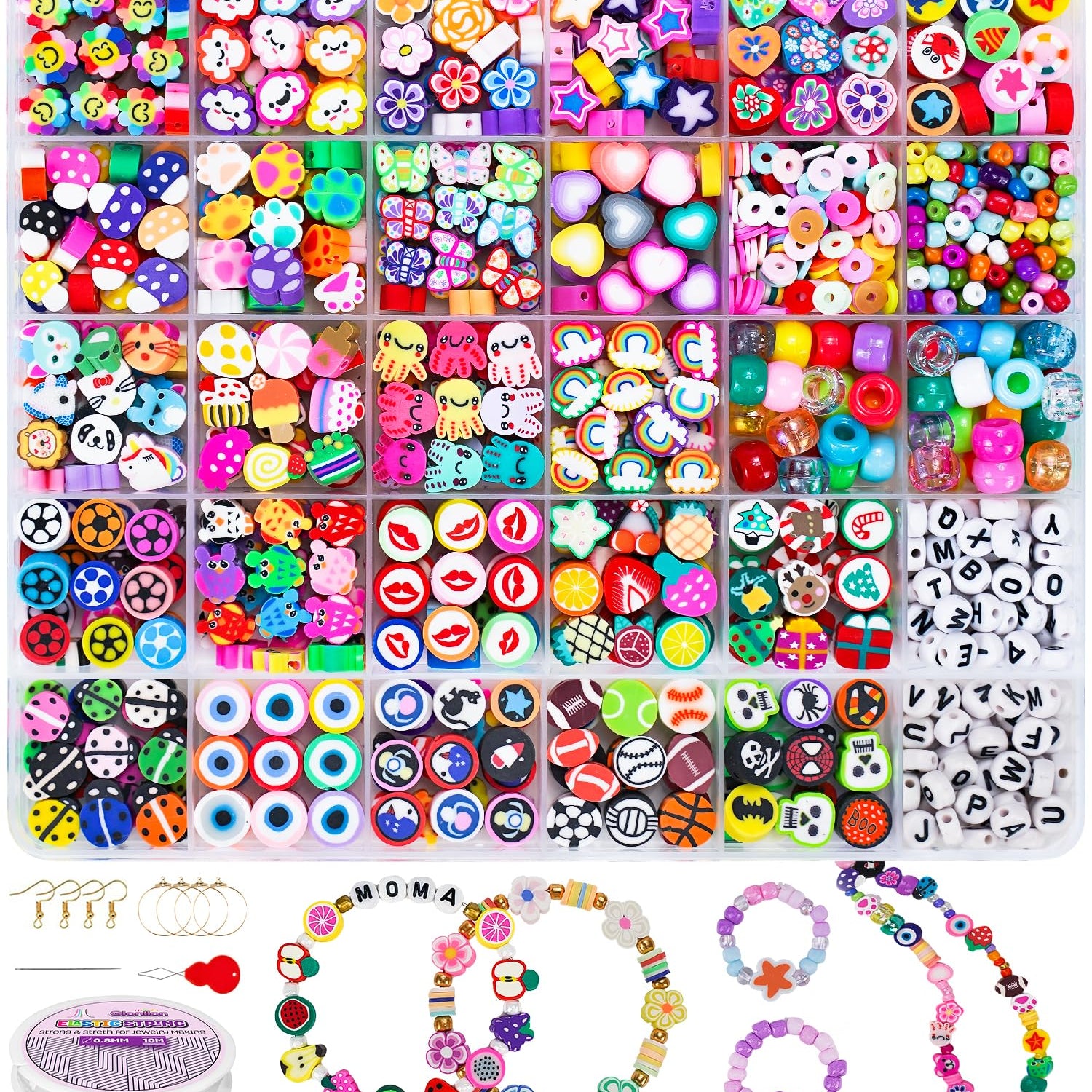 - 1000PCS BRACELET MAKING KIT - All you need included, you will get rich polymer clay beads charms in 24 different styles, with perfect partner beads of classic clay beads, letter beads, kandi pony beads, and multicolor seed beads. You can also get a variety of accessories, elastic string, crystal string, beading needle, needle threader, earrings, ear hooks, they are packed in a plastic compartment box, which are unique and creative to meet all needs when you are making bracelets.