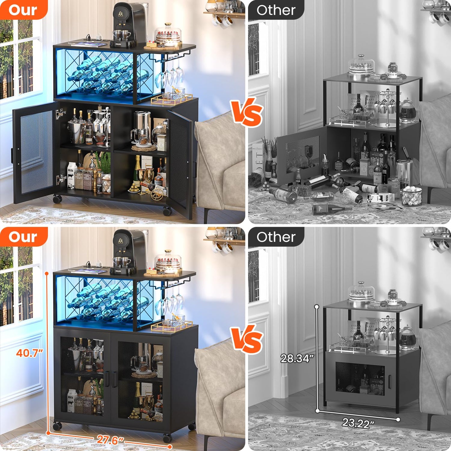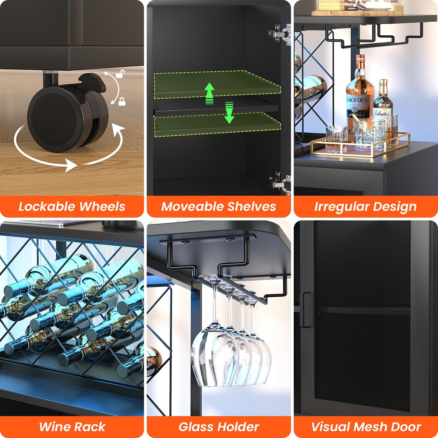 - 🍹Home Bar Cabinet with RGB LED Light: The LED light strip of the bar cabinet has functions such as DIY light color, microphone sync, music sync, etc., which can create an amazing entertainment atmosphere while holding a good supply of booze during gatherings with family or friends!