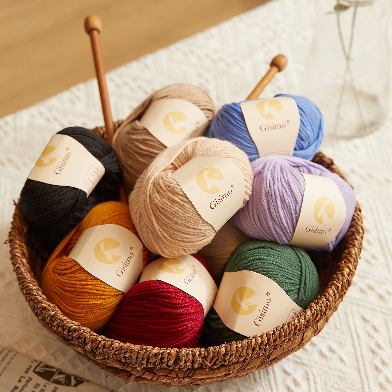 GISIMO 100% Merino Wool Yarn, 6-Ply Luxurious and Soft Yarn for Hand Knitting & Crocheting, 1.76 OZ/50g, 127 yds/116 Meters (Green, 1 Ball)