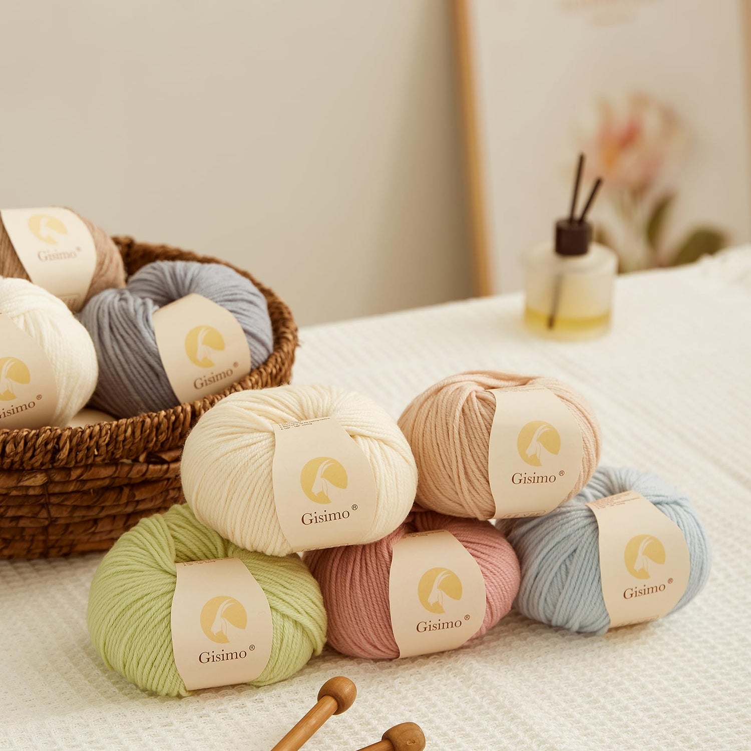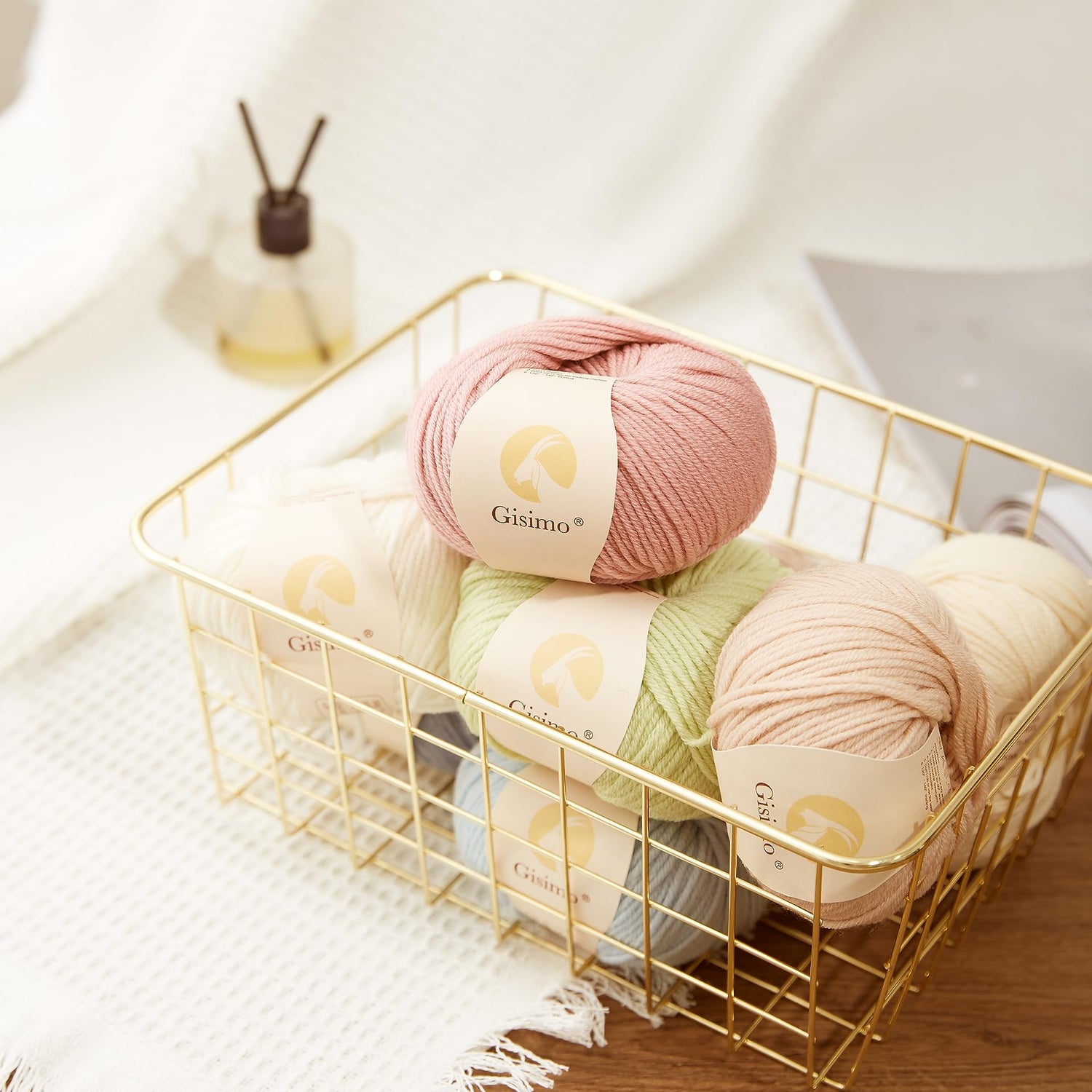 Gisimo 100% Merino Wool Yarn, 6-Ply Luxurious and Soft Yarn for Hand Knitting & Crocheting, 1.76 OZ/50g, 127 yds/116 Meters (Light Pink, 1 Ball)