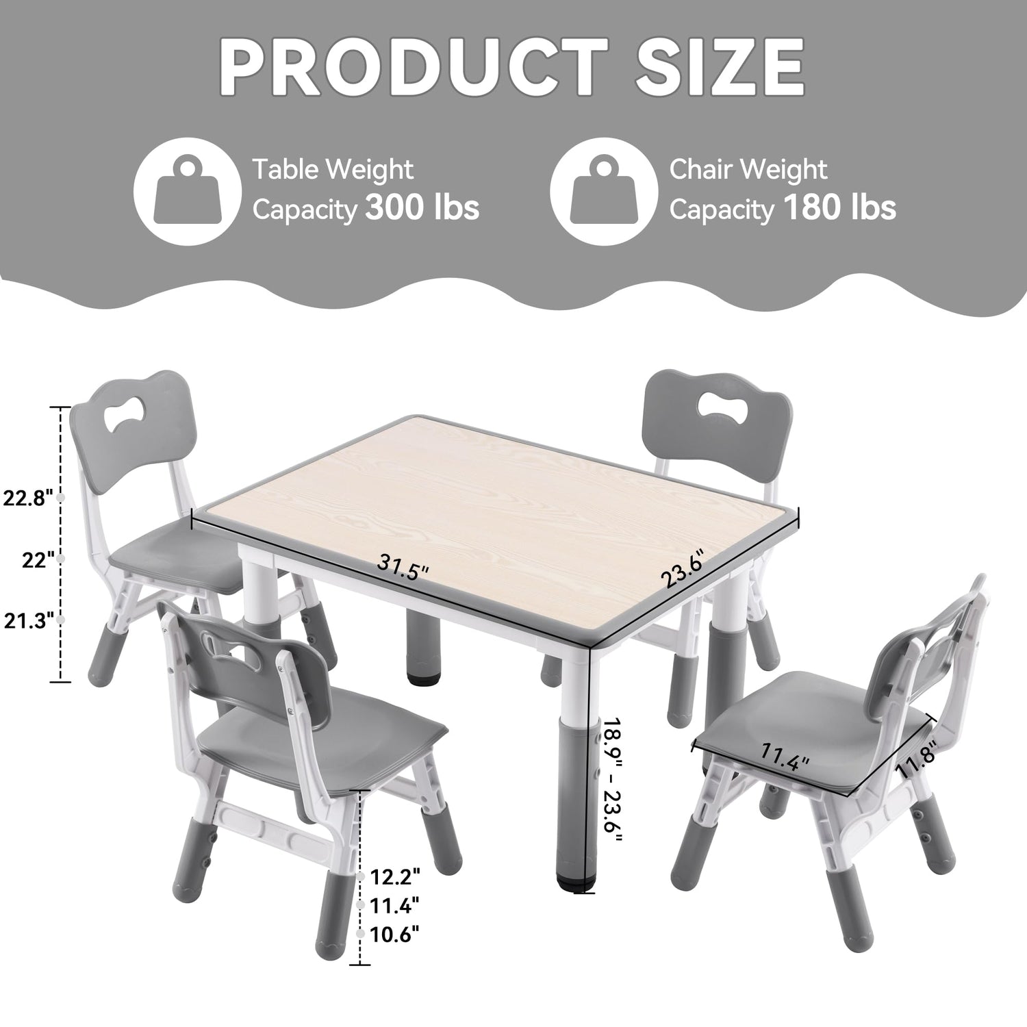 GITAWUSA Kids Study Table and Chairs Set, Height Adjustable Toddler Table and Chair Set for Kids Ages 3-8, 31.5" L x 23.6" W Graffiti Desktop Plastic Children Art Table with 4 Seats, Grey