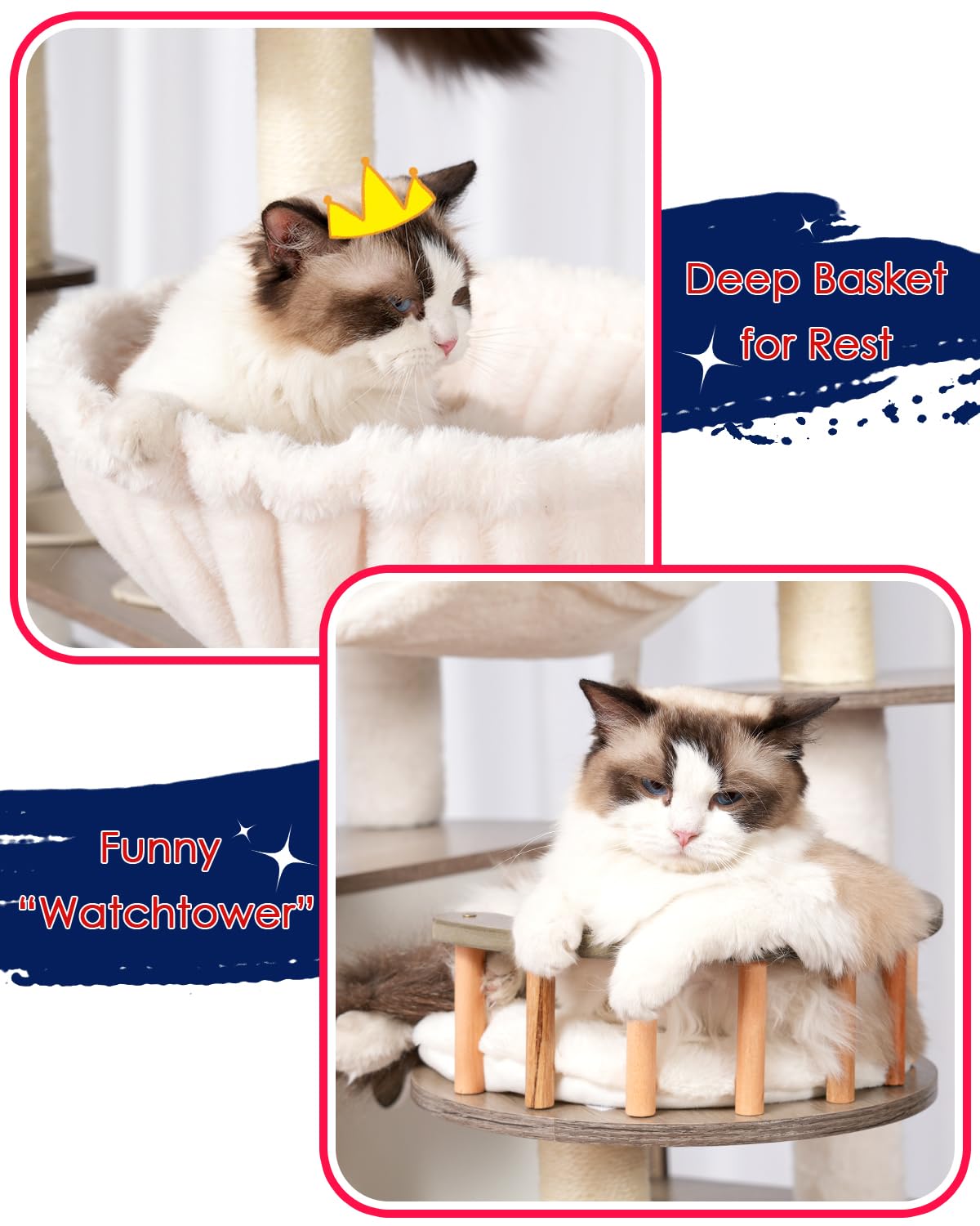 - Not just for your cat, but for your home:Modern design style matches your home better, meantime this tall cat tree provides large top platforms,spacious cat condo and basket espically for indoor adult cats and multi-cats!