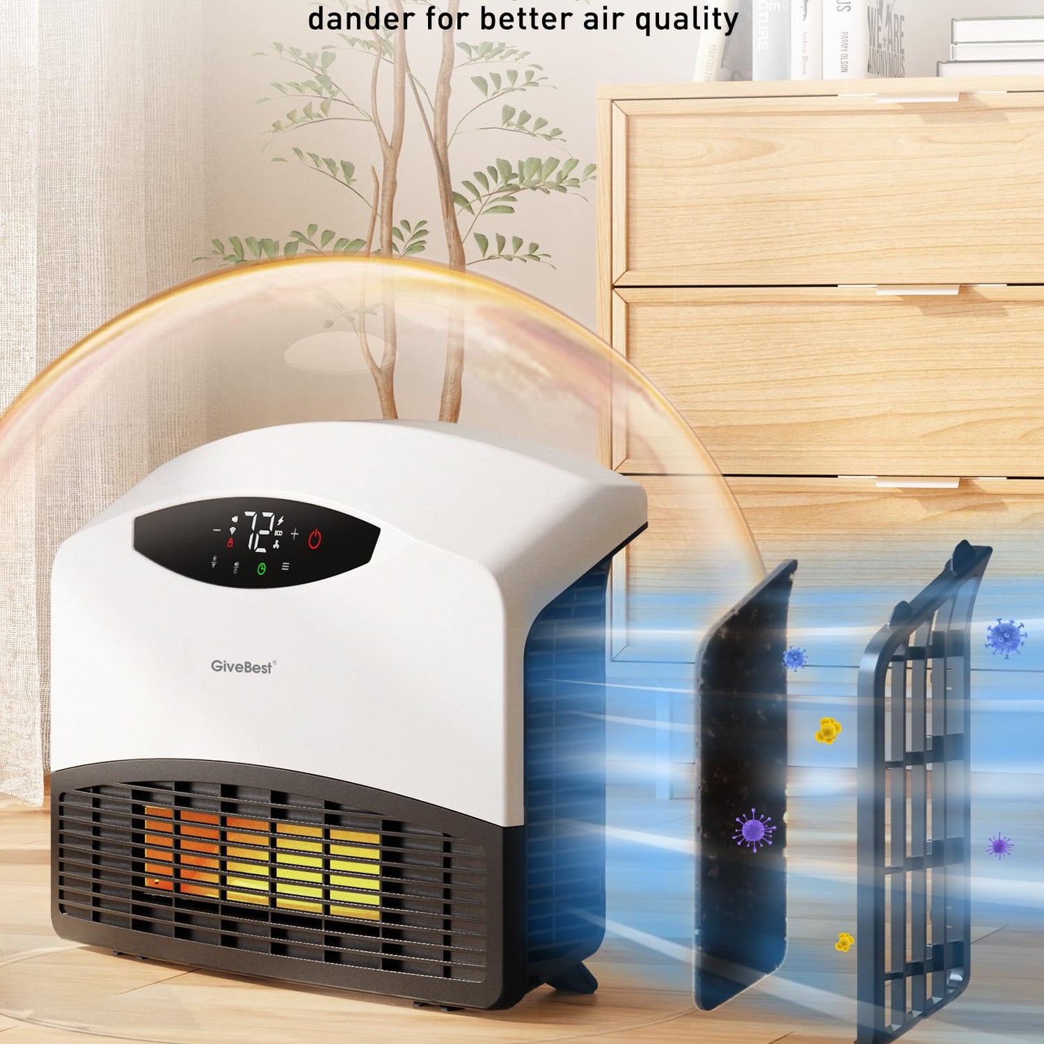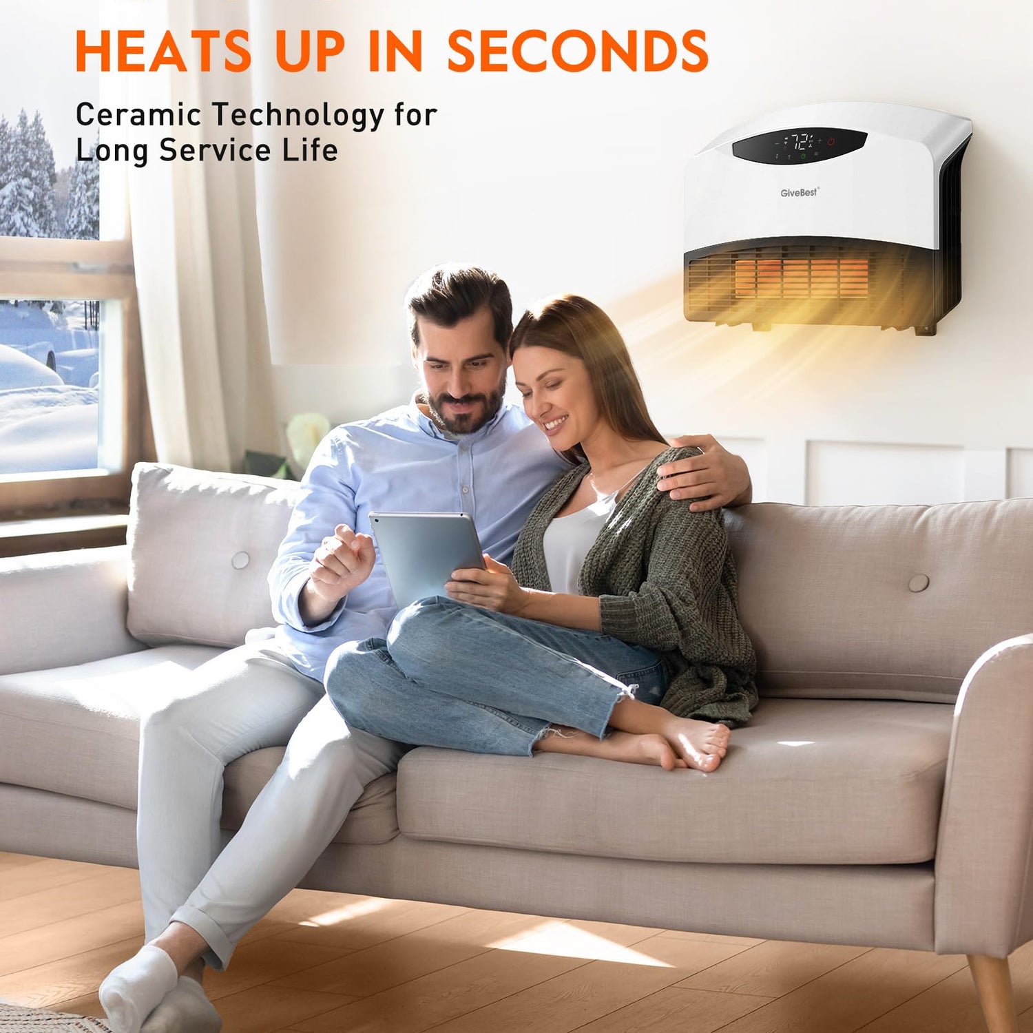 GiveBest Electric Wall Heater with WiFi and Remote Control, Floor or Wall Mounted Heater, Large Room Coverage, 3 Heating Modes, 1500W Fast Heating Space with Thermostat for Indoor Room Use