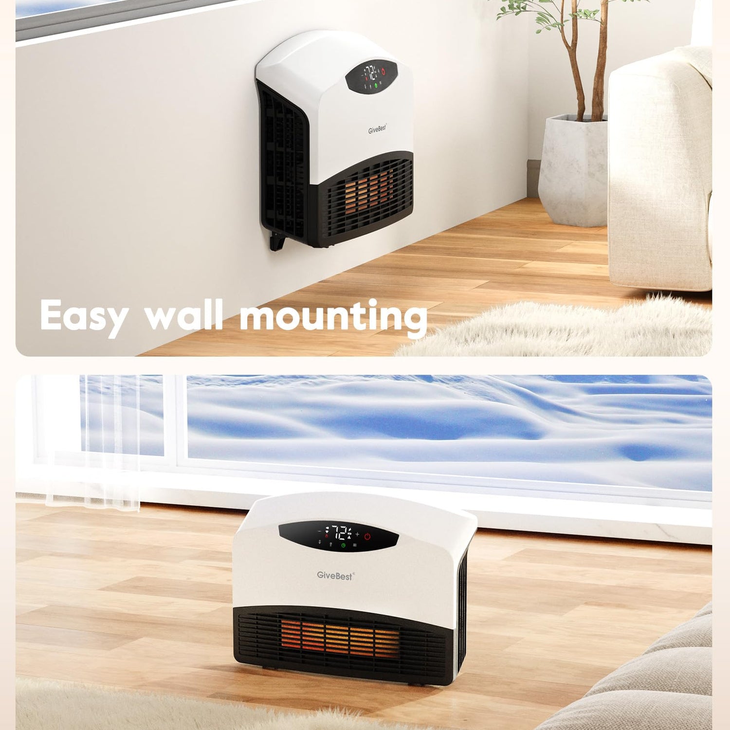 - 【EFFICIENT ECO HEATING】Equipped with a precise thermostat, the ECO mode allows you to set and maintain your desired room temperature. Once the room reaches the set temperature, the wall mounted space heater will automatically adjust its heating output to conserve energy