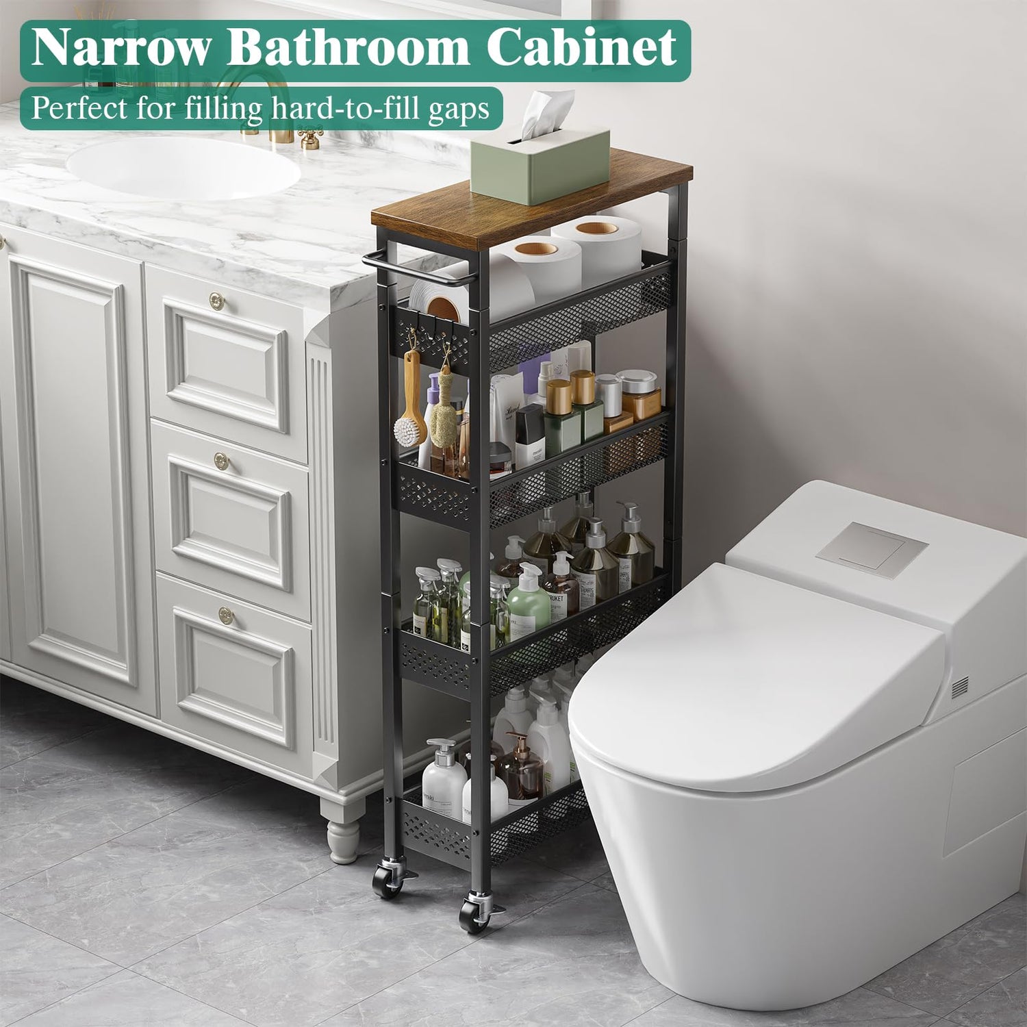 - [7.1 in Width for Small Spaces]: This slim storage cart maximizes small spaces, perfect for kitchens, bathrooms, laundry rooms, or any area needing extra storage. Its slim design allows it to fit into narrow gaps and tight corners with ease