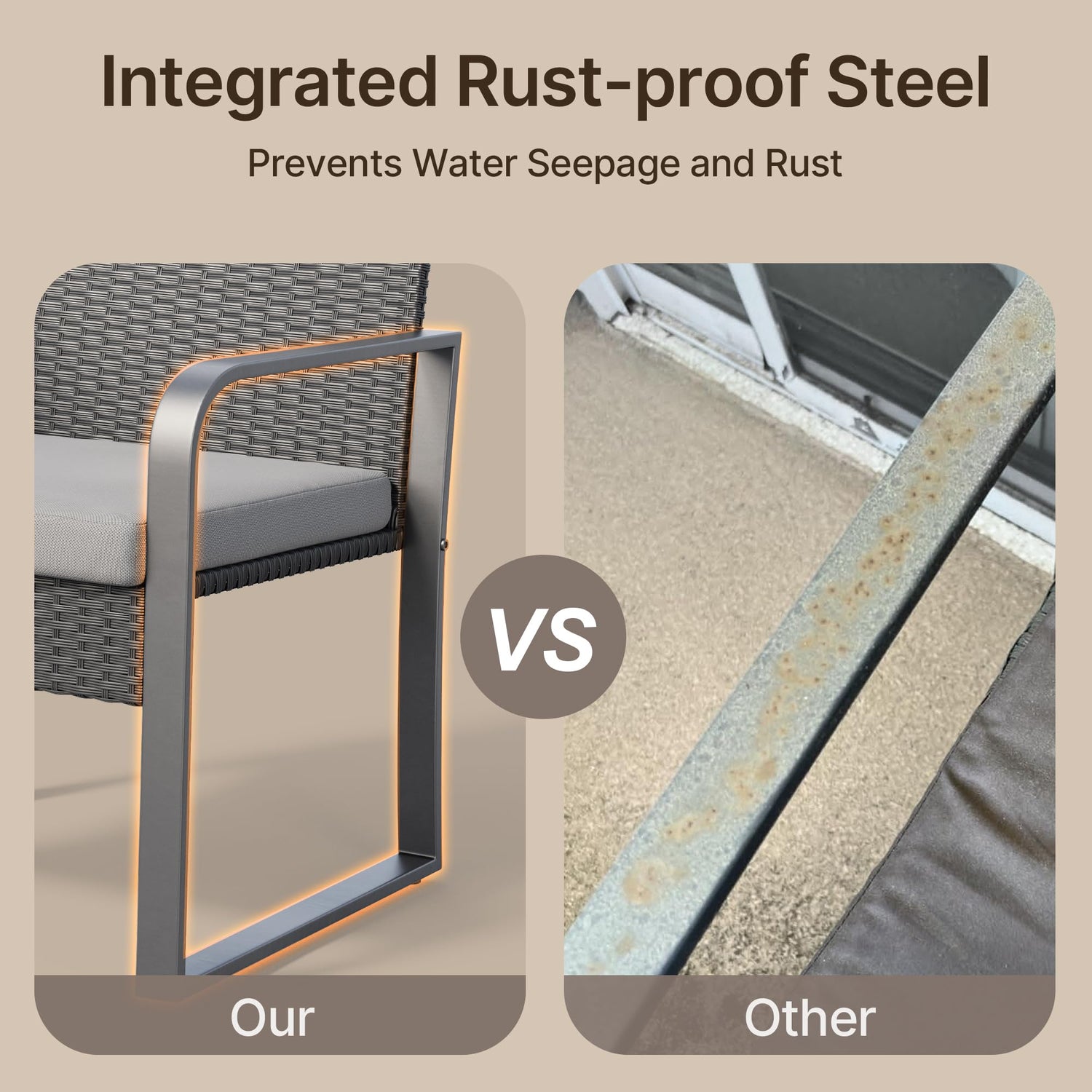 - [Design in line with product scenarios] This outdoor patio furniture set has a simple design, and the color meets the choices of the public currently on the market. It's perfect for decorating your patio, poolside, balcony, patio, backyard and other suitable areas of your home.