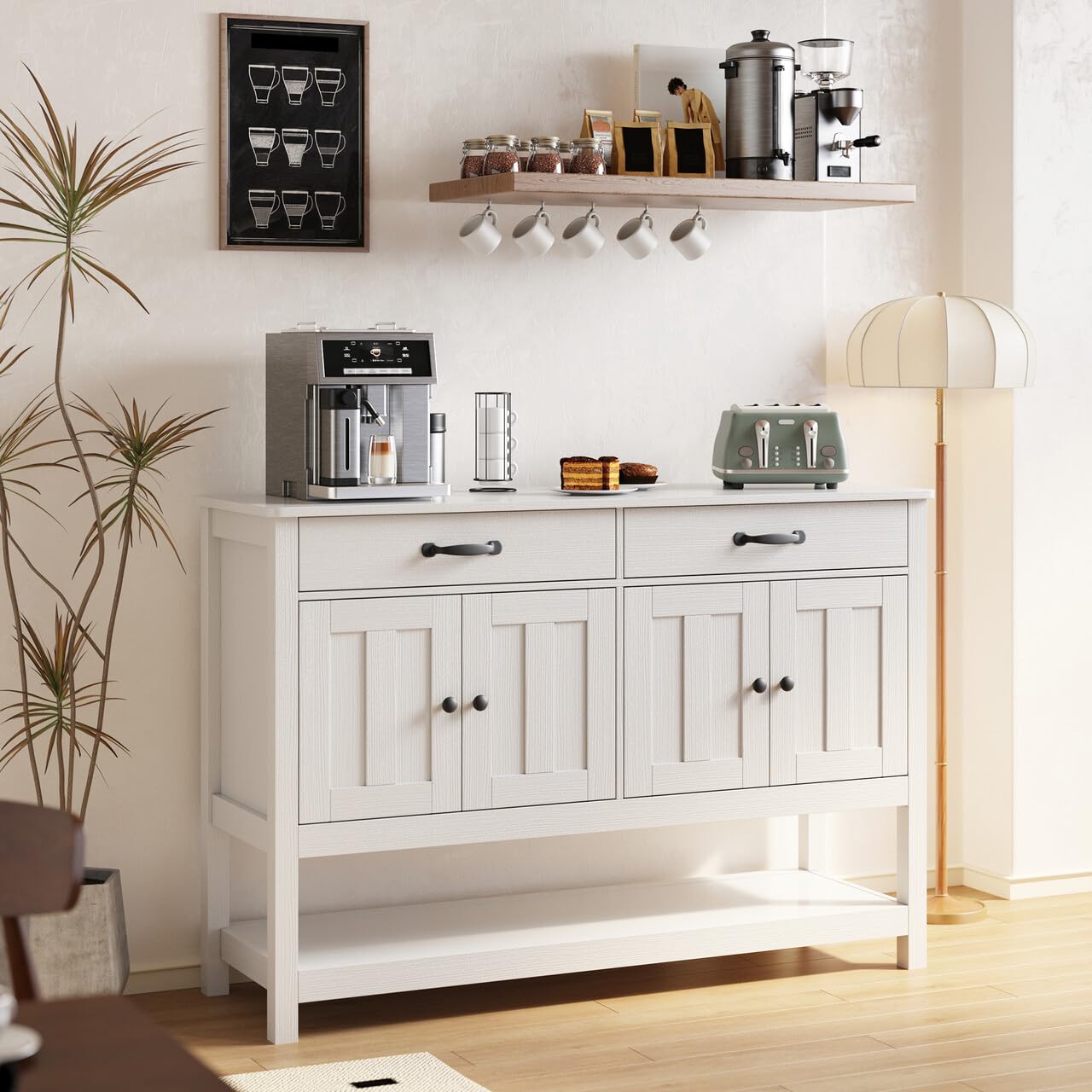 Gizoon 47'' Buffet Sideboard Cabinet with Storage, Modern Farmhouse Coffee Bar with 2 Drawers and Doors, Entryway Table with Shelf for Living Room, Kitchen and Hallway