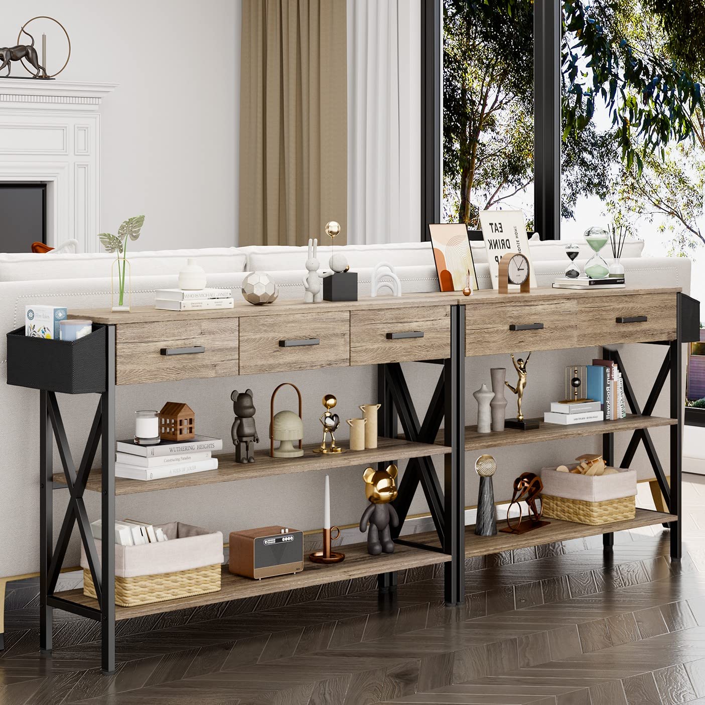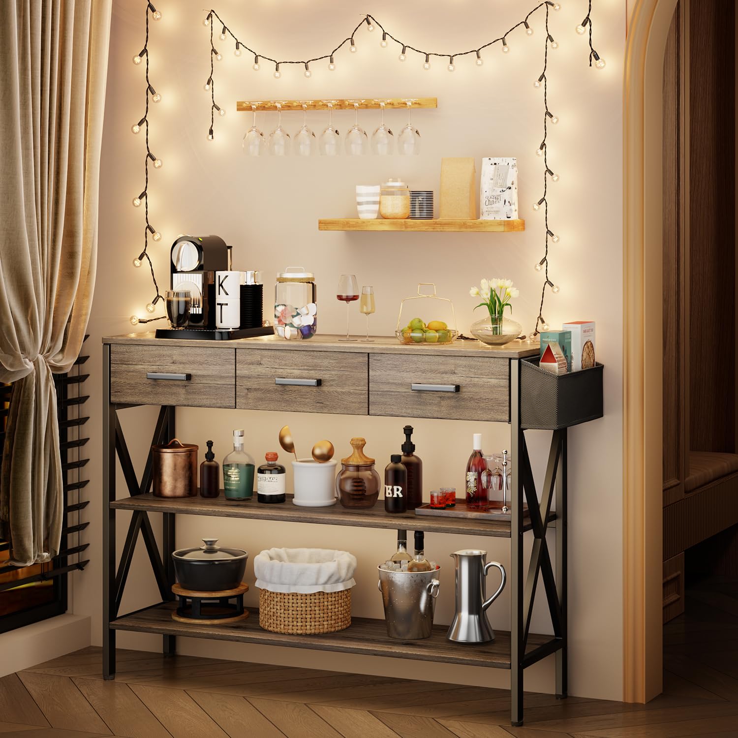 Gizoon 47" Console Table with 3 Drawers, Industrial Entryway Table with 3 Tier Storage Shelves, Narrow Long Sofa Table for Entry Way, Hallway, Couch, Living Room, Kitchen, Grey