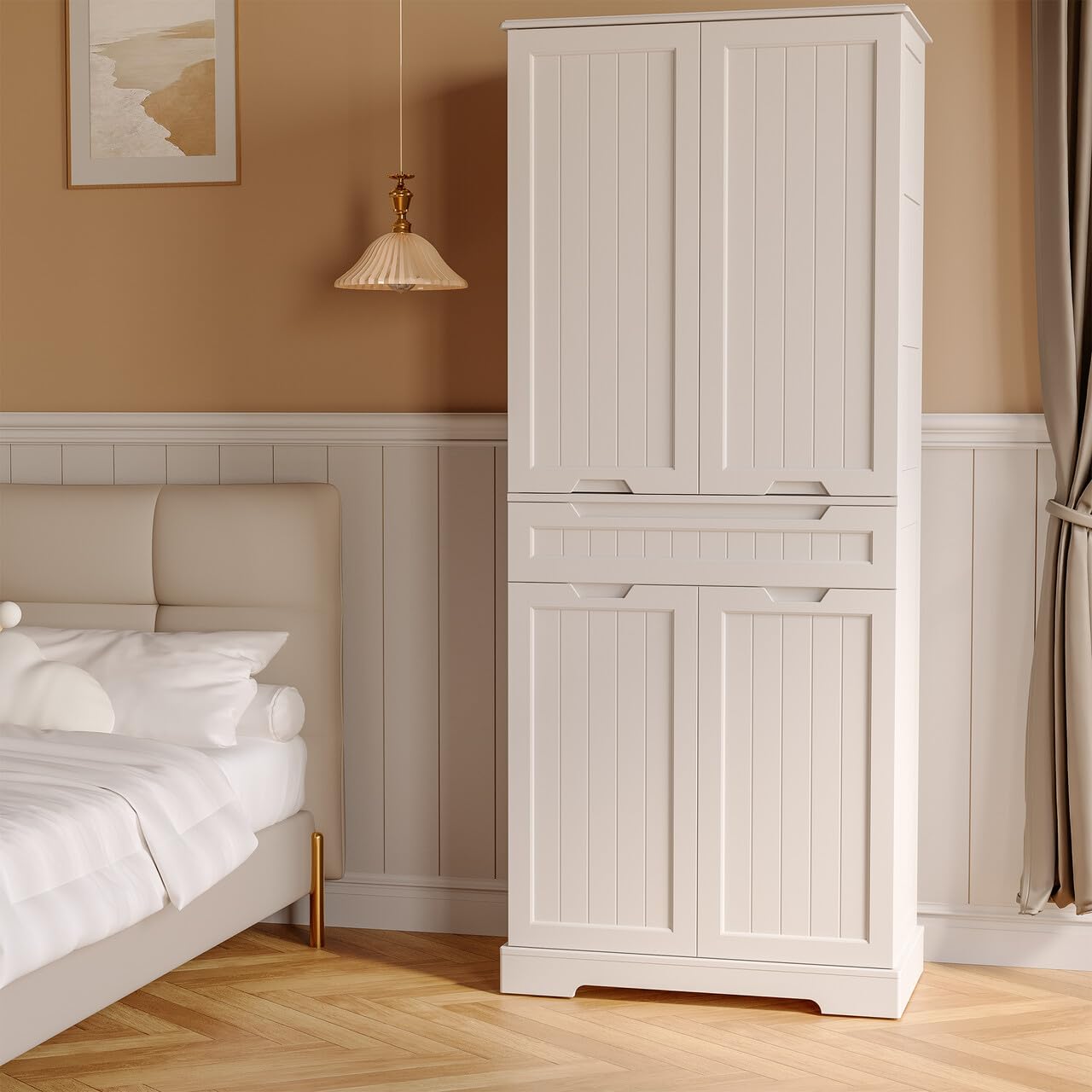 - Large Storage Capacity : The generously sized kitchen pantry cabinet is designed to meet your individual storage needs. This cabinet is perfect for holding teas, coffees, fruit powder, cereals, rolls, and chips in top cabinet, small snack packs and dips in the drawer, and keep your gluten free foods and ingredients or cookware and small appliances in the bottom cabinet