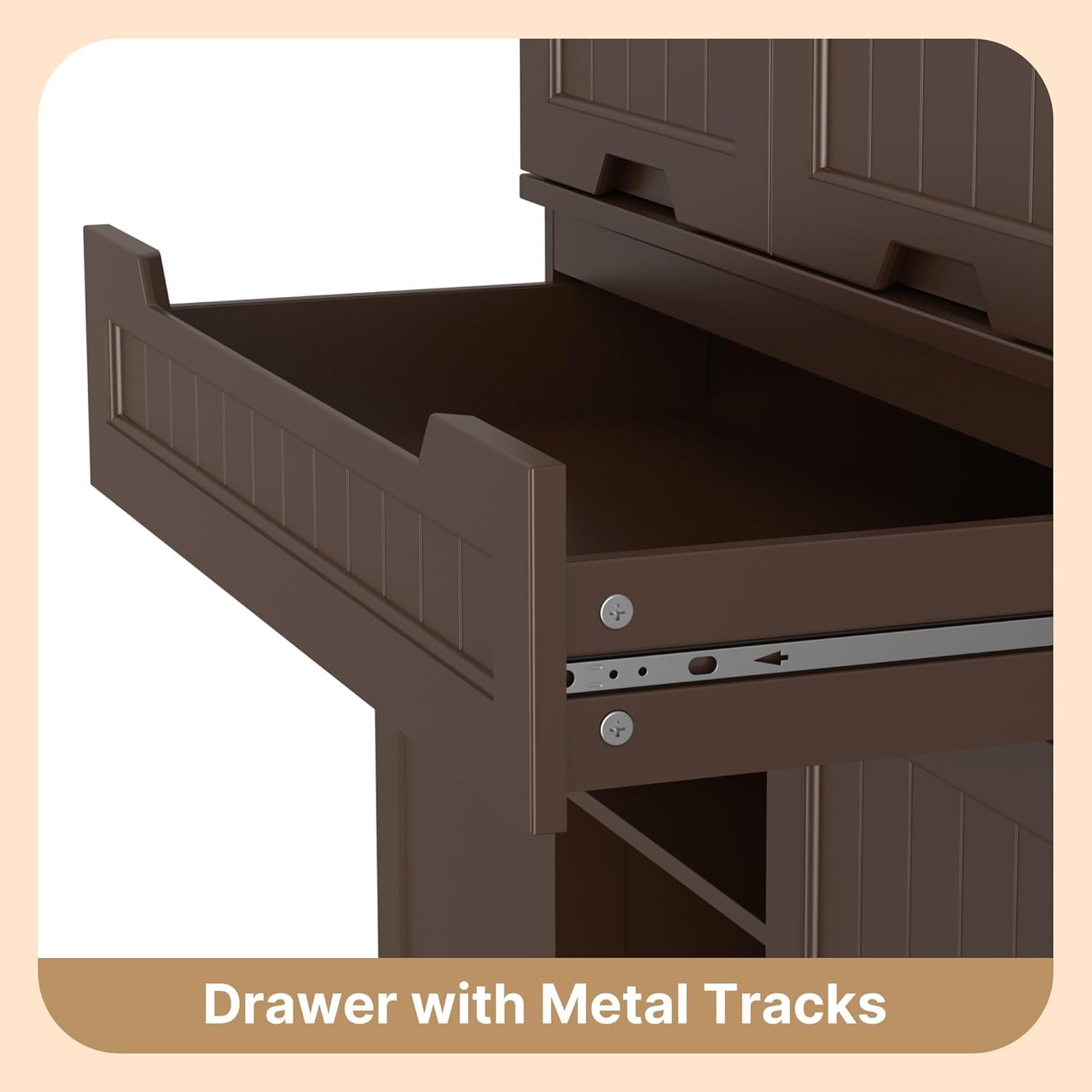 - Multipurpose Cabinet : This elegant white kitchen pantry cabinet features cutout handles, a magnetic door, and smooth sliding metal tracks. Its stylish design makes it easy to match with any room, including the bathroom, entryway, or laundry room