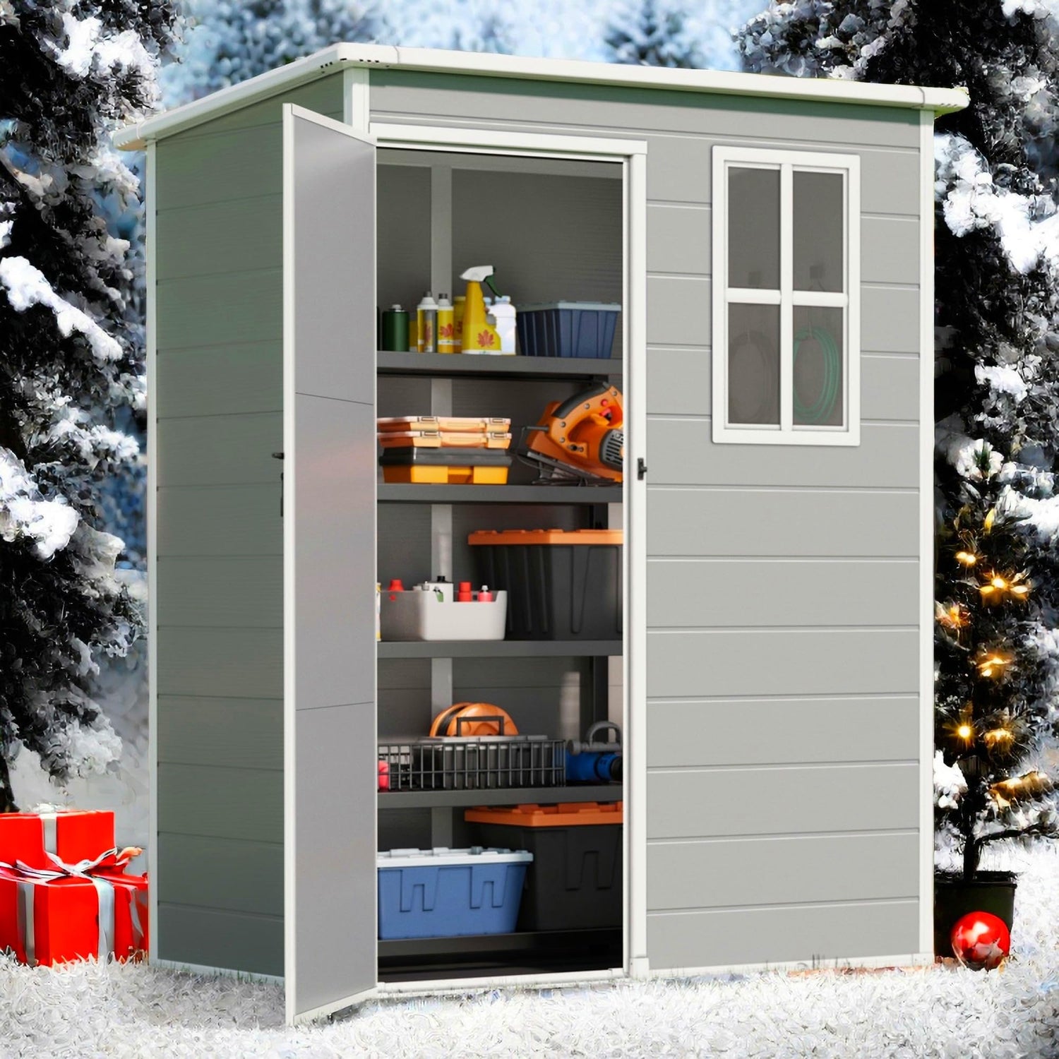 Gizoon Outdoor Resin Storage Shed 5X3 FT, Plastic Garden Shed for Bike, Garbage Can, Tool, Outside Sheds with Lockable Door for Backyard Patio Lawn, Grey & White