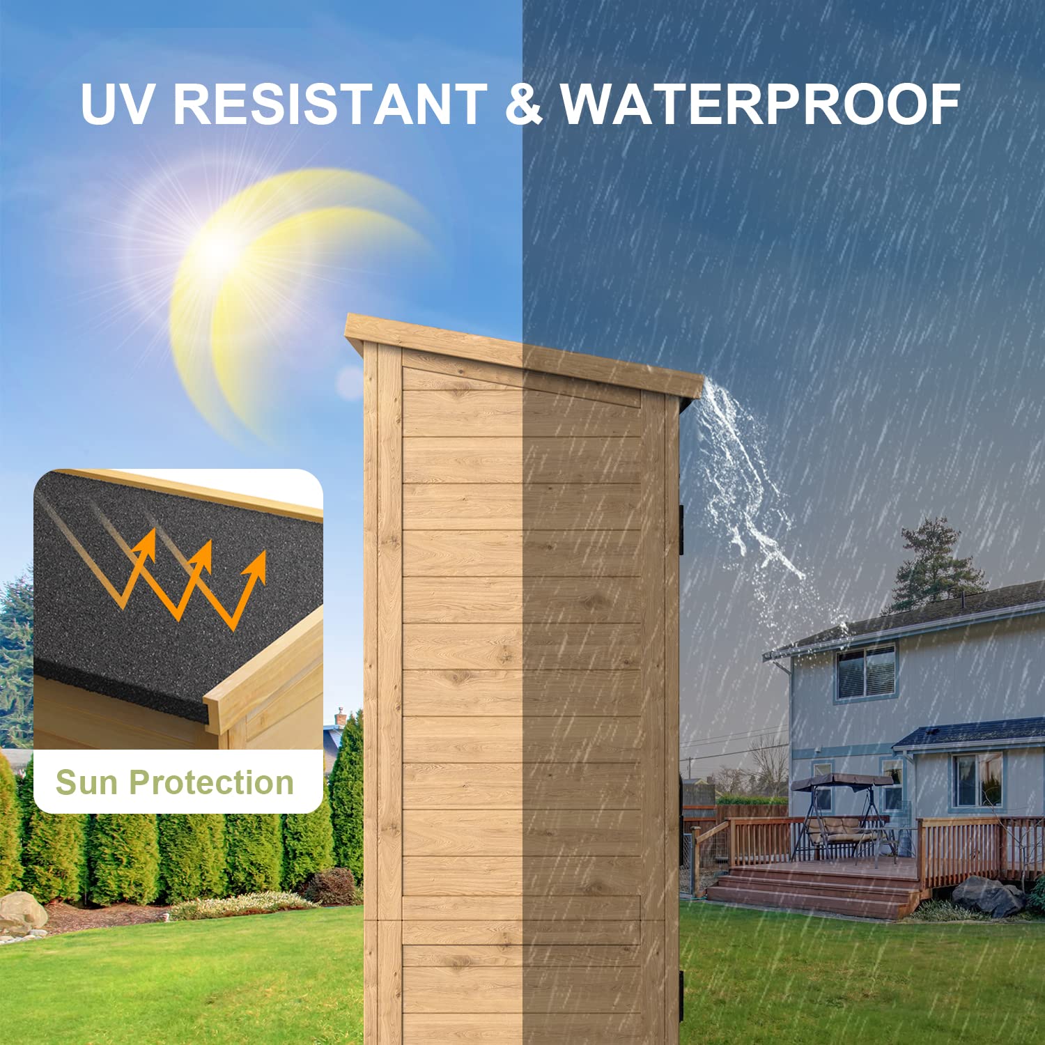 - ⛓️【Premium Materials】The outdoor cabinet is made from high-quality fir wood which is known for its durability and strength. A polished finish adds a touch of elegance and expresses a rustic style. Asphalt roofing is coated with a safe waterproof layer and serves as a protective barrier against bad weather, rain, sunlight, and water accumulation. A choice of super craftsmanship, ensuring it will stay with you for years to come.