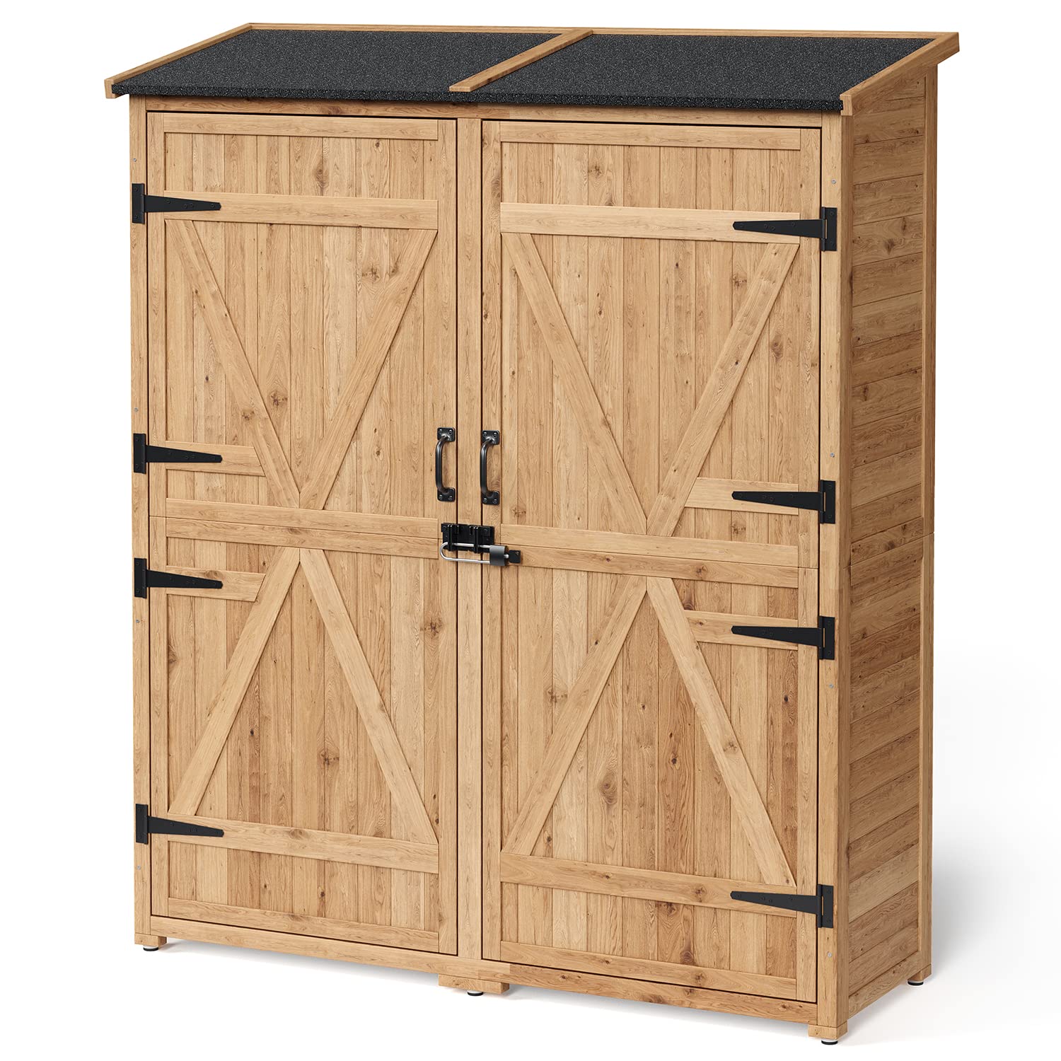 Gizoon Outdoor Storage Cabinet with Waterproof Roof, Double Lockable Doors Garden Shed with 2 Removable Shelves, Wooden Storage Shed with Large Storage Space for Patio, Garden, Backyard, Lawn