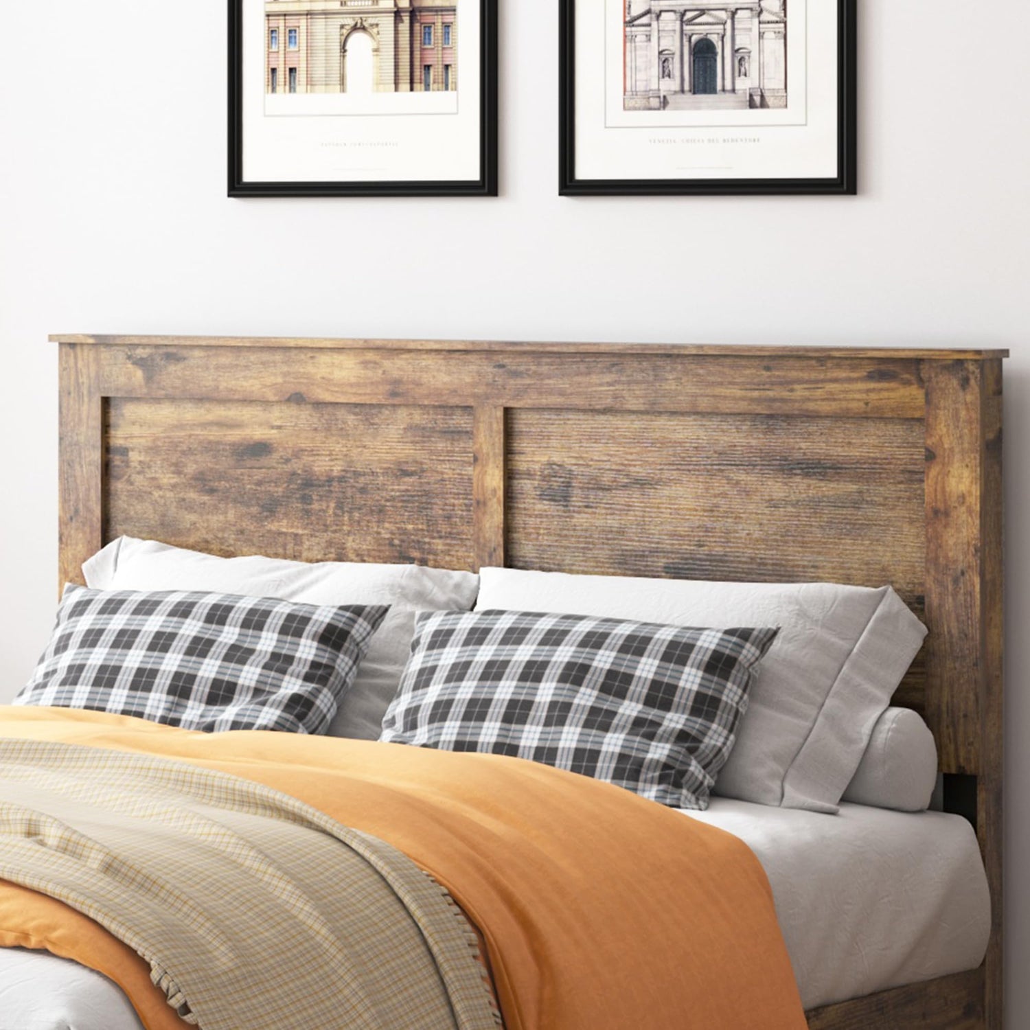 GJQN Full Size Bed Frame with Headboard, Rustic Wood Platform Bed Frame with 12 Wooden Slats Support, No Box Spring Needed, Noise Free (Dark Brown, Full)
