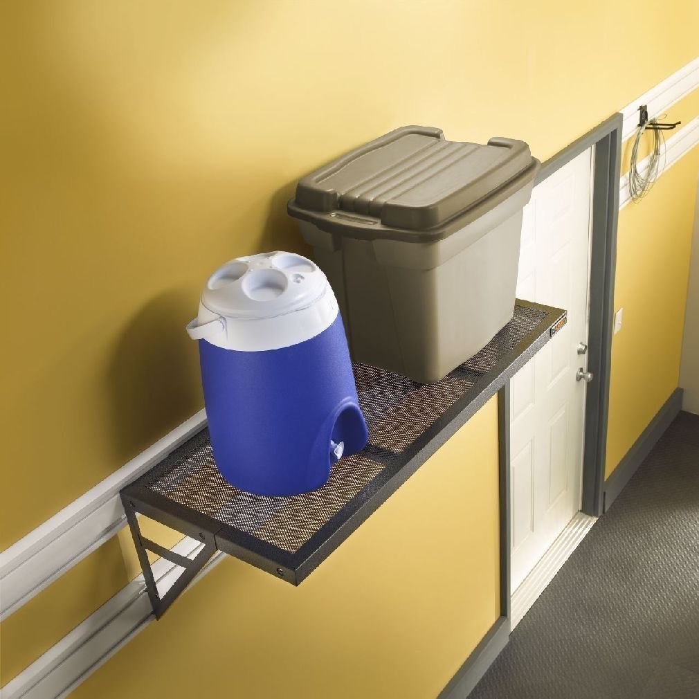 The Gladiator GearLoft Shelf provides an extra deep surface for storing larger items, while the see-through mesh design allows you to inspect stored items even when the shelf is mounted high on the wall. The dual-mounting shelf brackets can be installed in an upward or downward position for increased storage flexibility