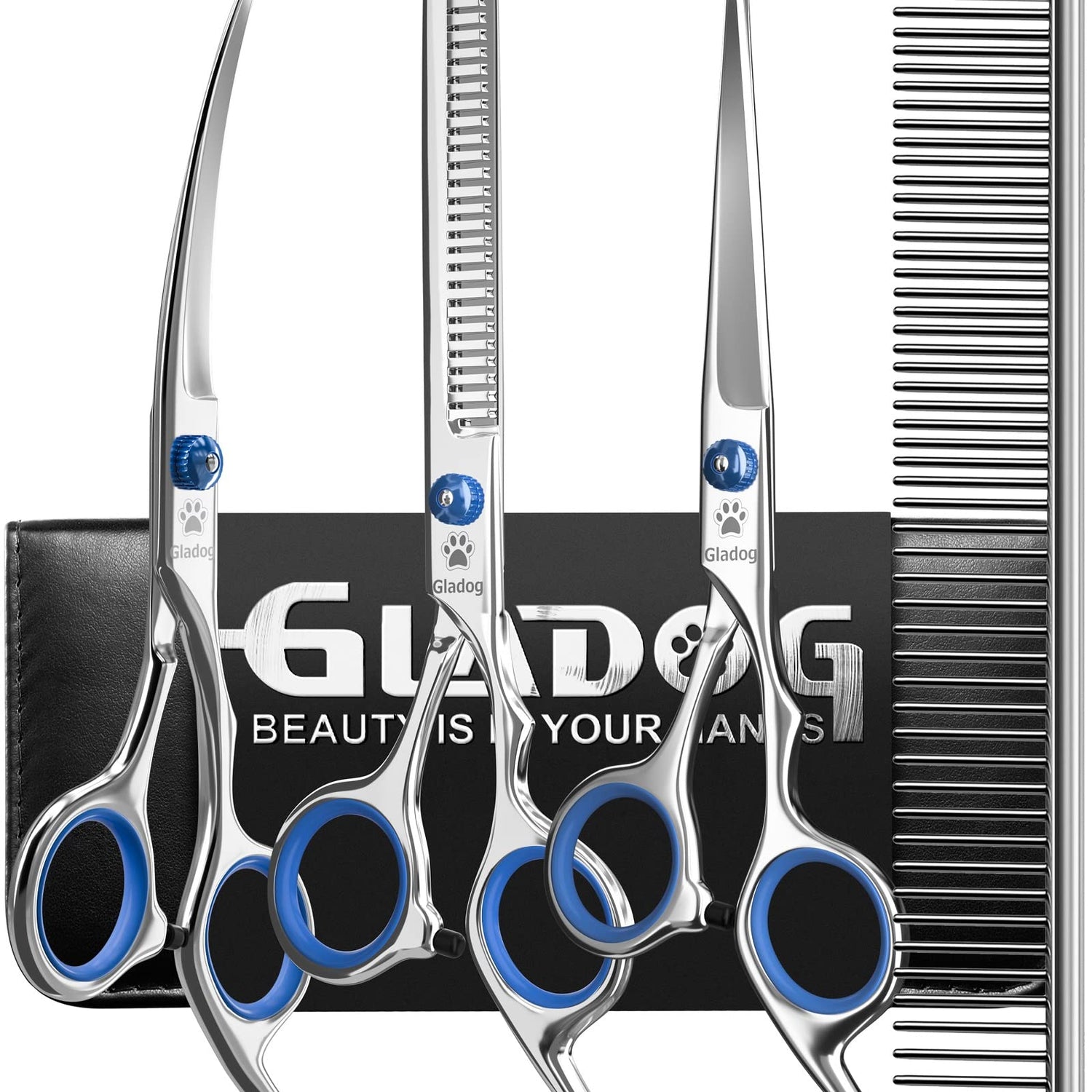 GLADOG Professional 5 in 1 Dog Grooming Scissors Set with Safety Round Tips, Sharp and Heavy-duty Pet Grooming Shears for Cats