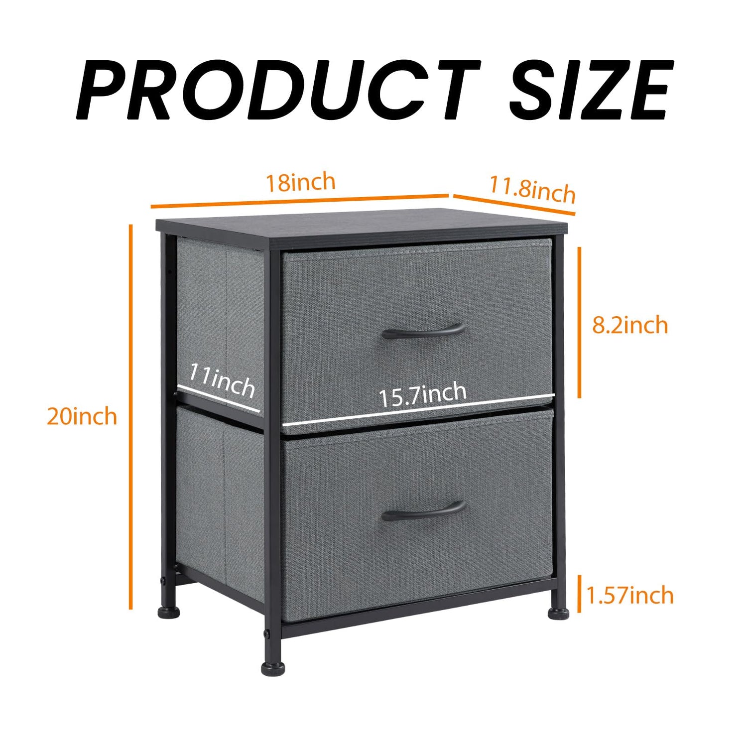 Details: GlasFlength Nightstand for Bedrooms Set of 2, Farmhouse Bedside Table w/ 2 Fabric Drawers, Small End Tables Storage Organizer with Wood Top for Kids Room Dorm Closet, Grey/2BC 2-Pack