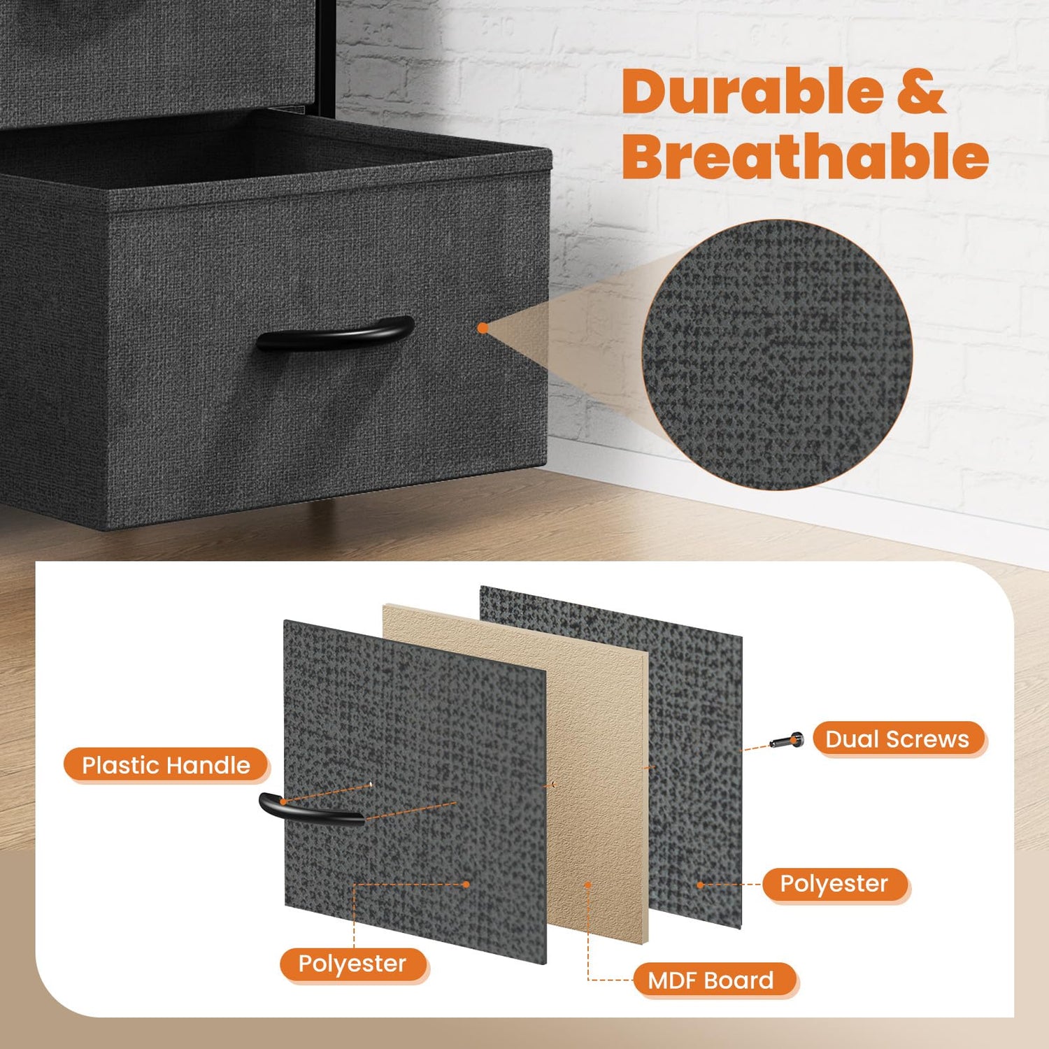 - Fabric-Box Bedside Table: A bedside table equipped with a fabric box for storage, ideal for use in bedroom closets, dorm rooms, or any space where extra storage is needed