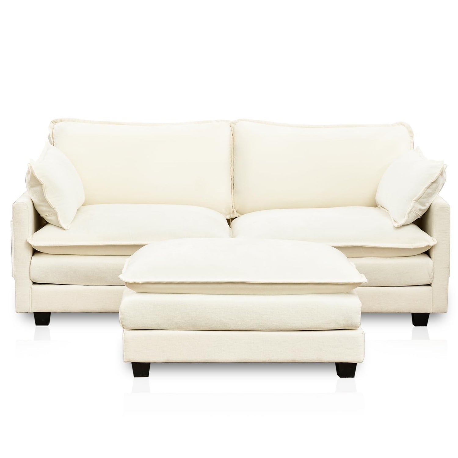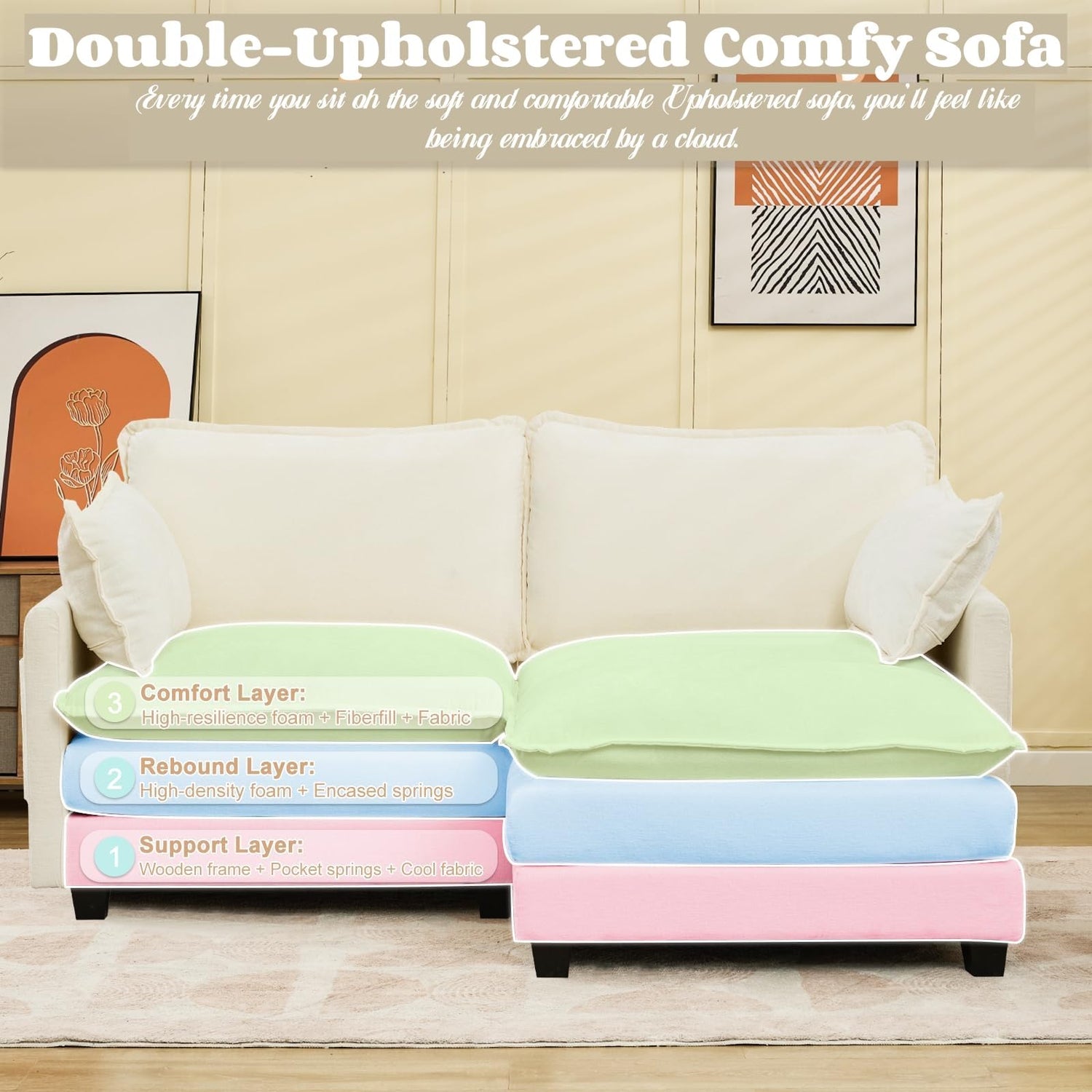 Details: Glasflength Sectional Couches for Living Room - L Shaped Couch Cloud Couch Comfy Sectional Couches, 77.6" 2 Seat Sofa Comfy Sectional with Ottoman/Pillows for Apartment, Bedroom, Cream White