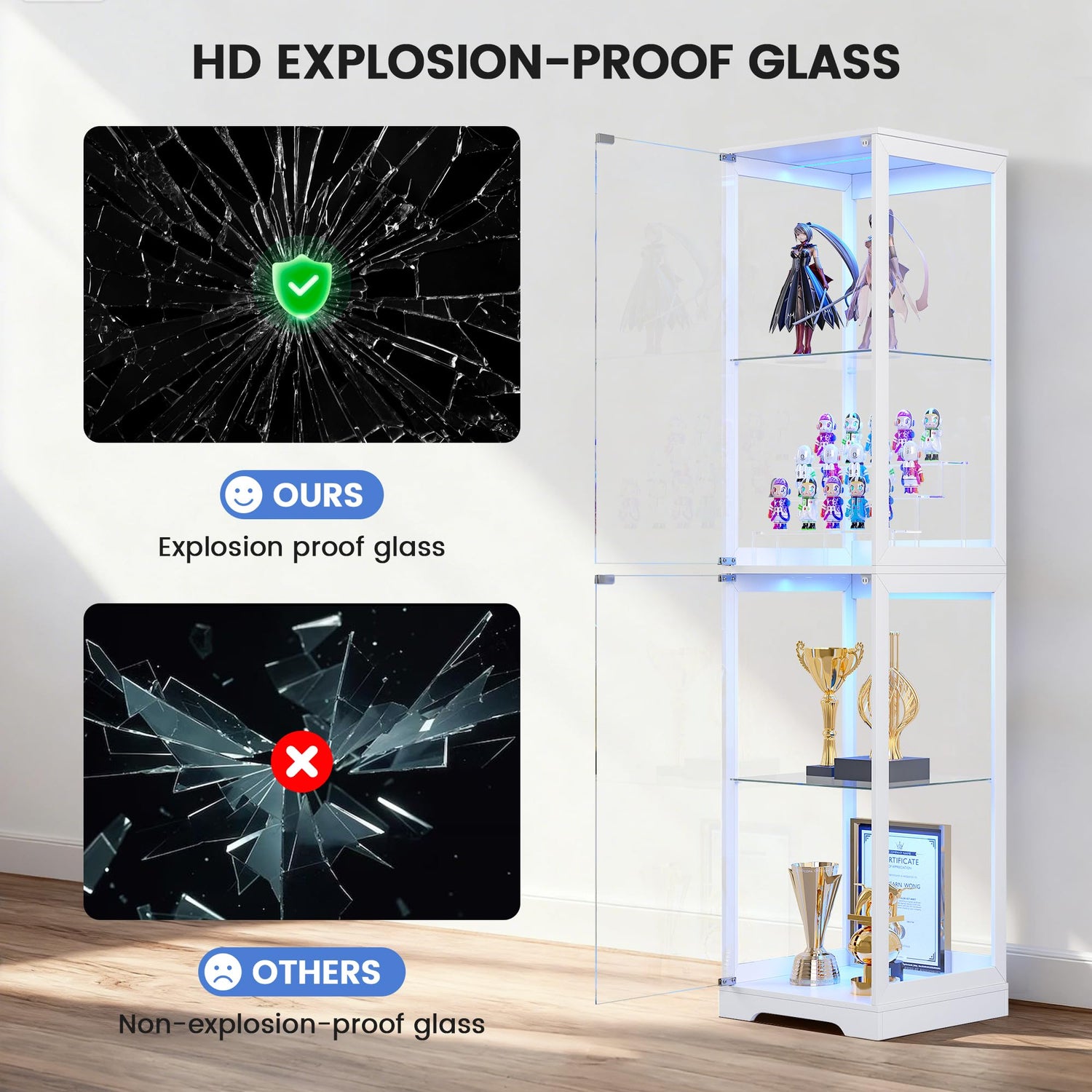 - 【Ample Storage Space】Our trophy cabinet features four tiers, measuring 15.7"W × 65"H × 15"D, providing generous storage capacity. Crafted from tempered glass, acrylic and high quality wood , it offers exceptional transparency—showcasing your collection while maintaining unobstructed visibility and light penetration